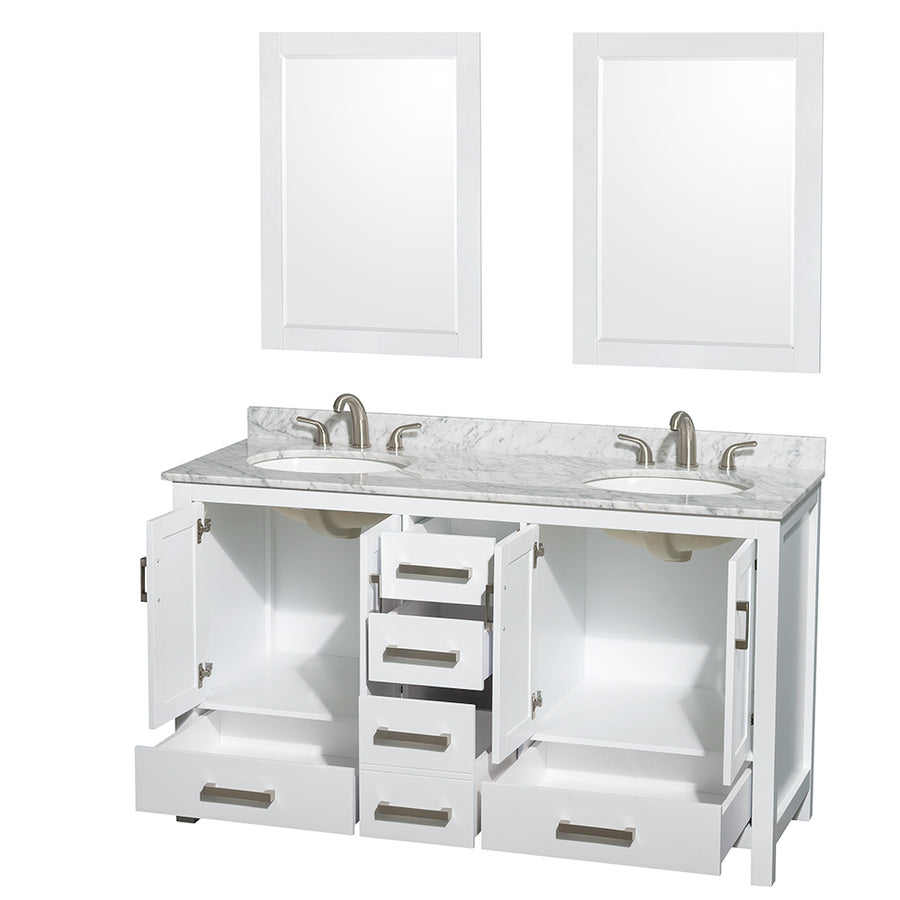 Wyndham Collection Sheffield 60-in Espresso Double Sink Bathroom Vanity with White Carrara Marble Natural Marble Top (Mirror Included)