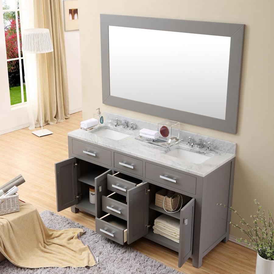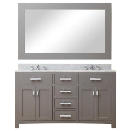 Water Creation Madison 60-in Cashmere Grey Double Sink Bathroom Vanity with Carrara White Natural Marble Top (Mirror Included)