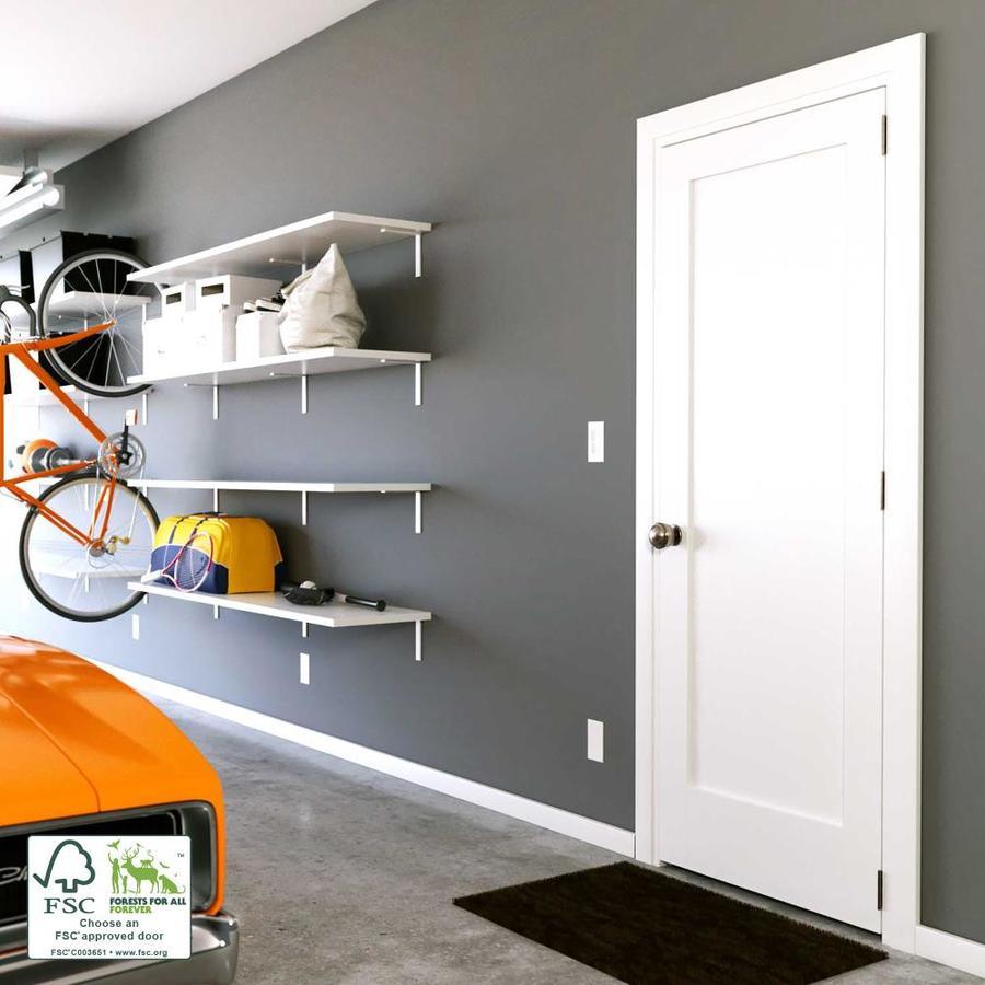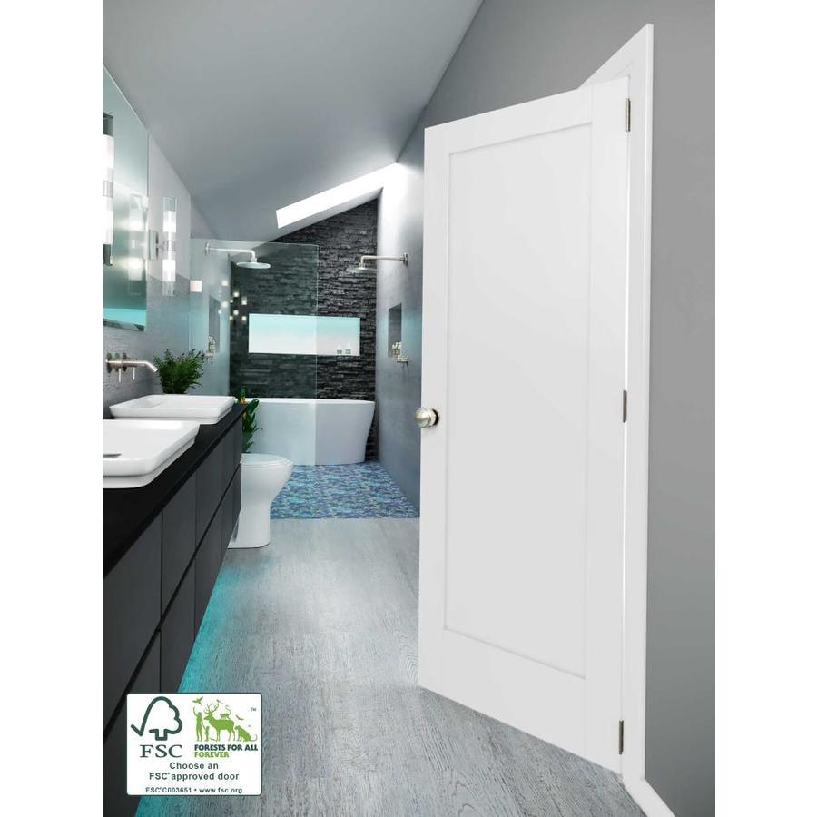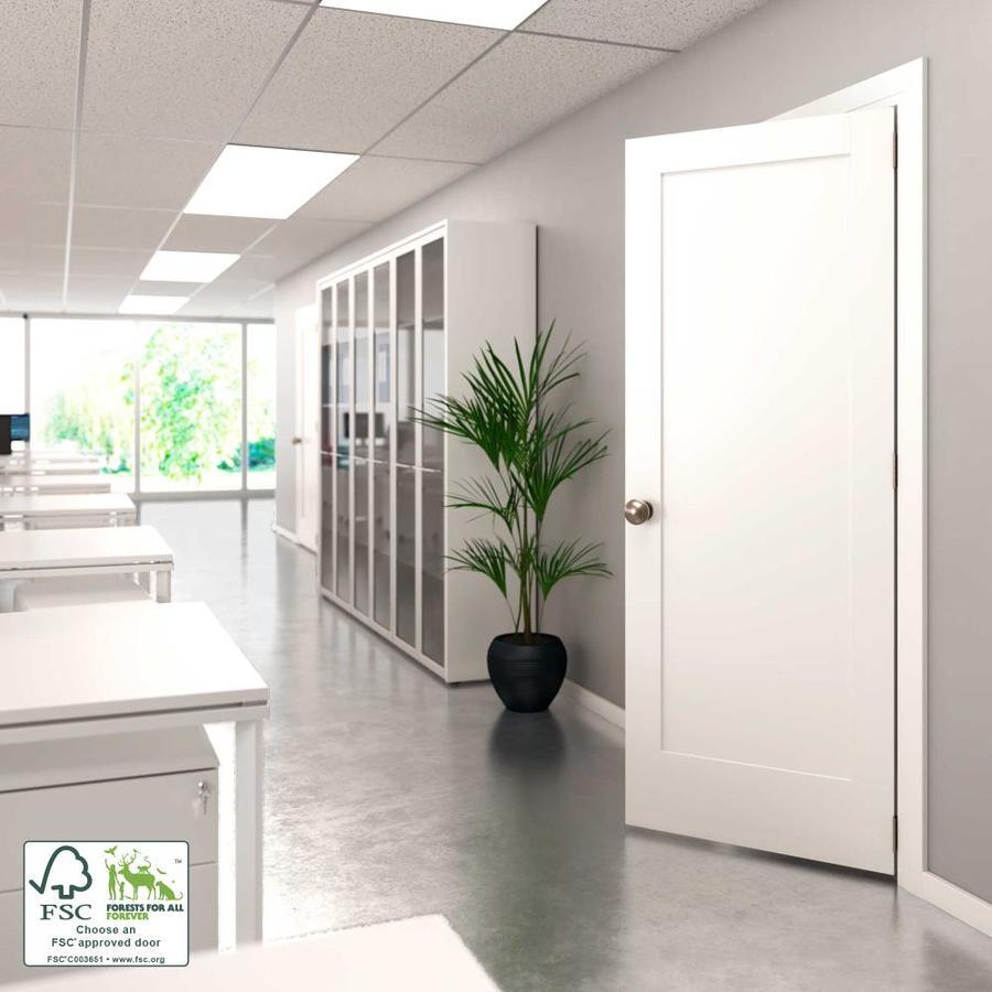 EightDoors Shaker 32-in x 80-in Primed White 1-Panel Square Solid Core Primed Pine MDF Slab Door