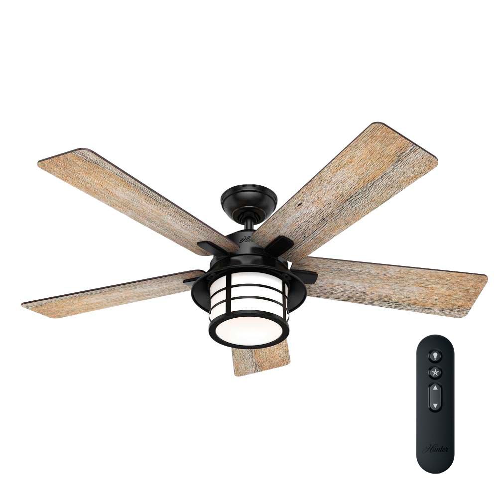 Hunter Lantern Bay 54-in Matte Black LED Indoor/Outdoor Ceiling Fan with Remote (5-Blade)