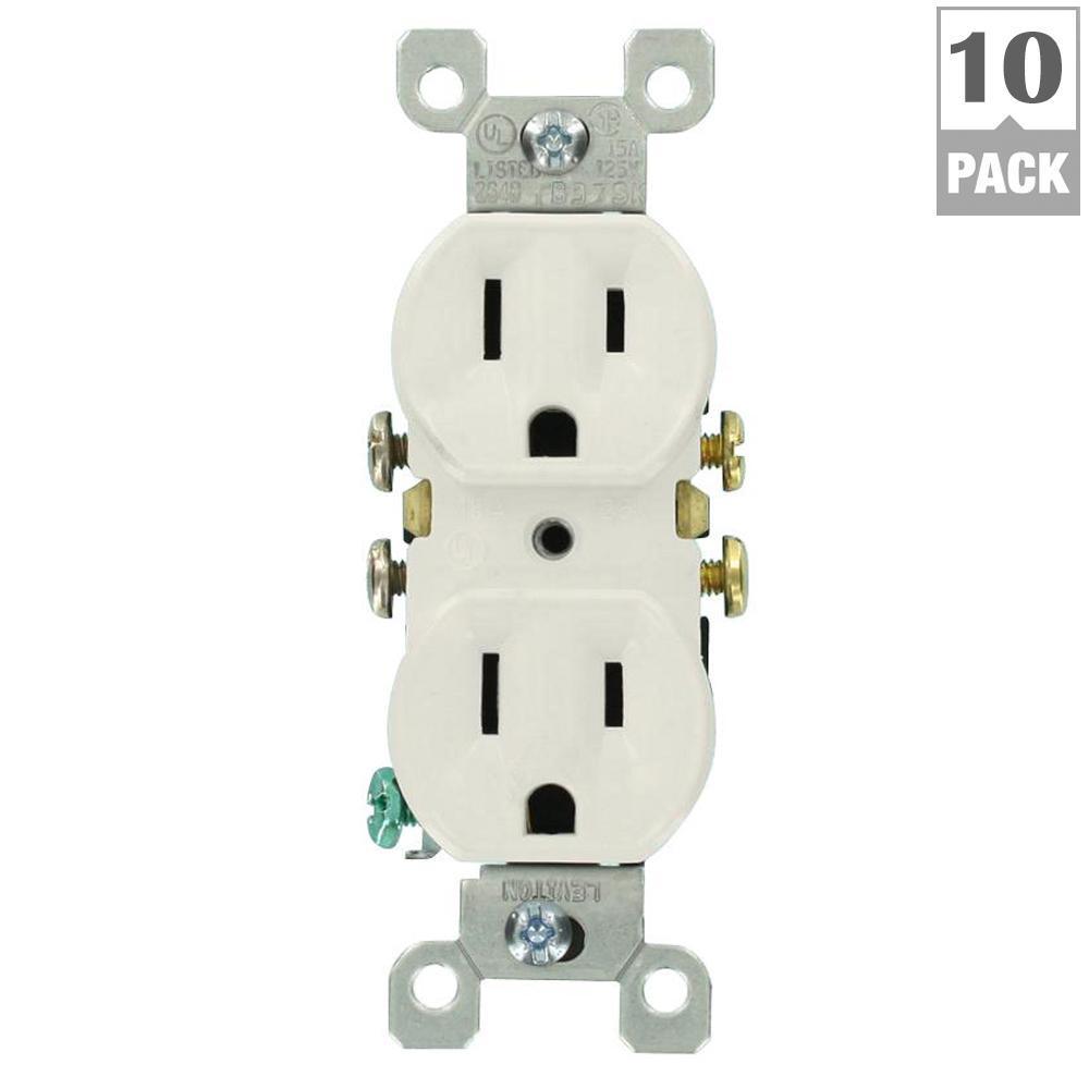 15 Amp Residential Grade Grounding Duplex Outlet, White (10-Pack)
