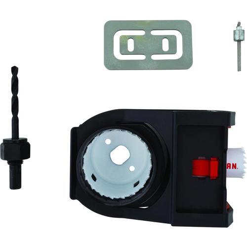 ADJUSTABLE: For both 2-3/8-in and 2-3/4-in backsets SELF CENTERING: Self centering jig fits all common door widths Common applications include wood doors Includes (1) 1-in Carbon Hole Saw; (1) 2-1/8-in Carbon Hole Saw; (1) Door Jig; (1) Latch Plate Template; (1) Router Bit; (1) Arbor with Pilot; (1) Bushing