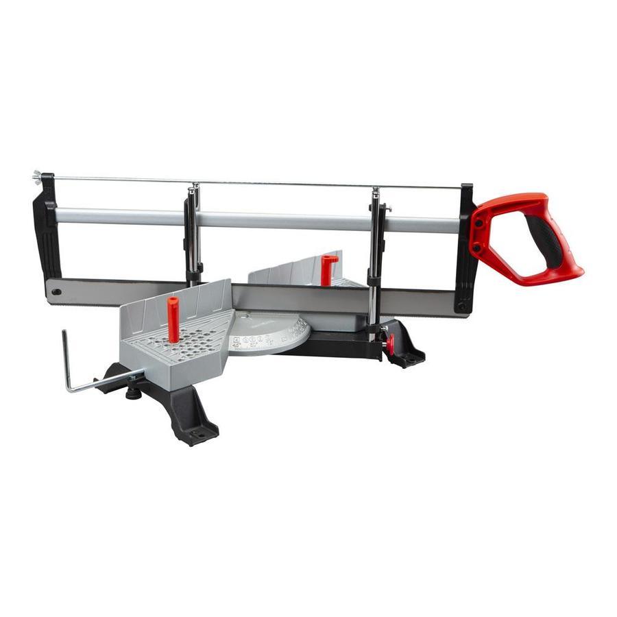 Package Contents Includes (1) miter box, (1) saw, (1) work stop and (2) cam pins