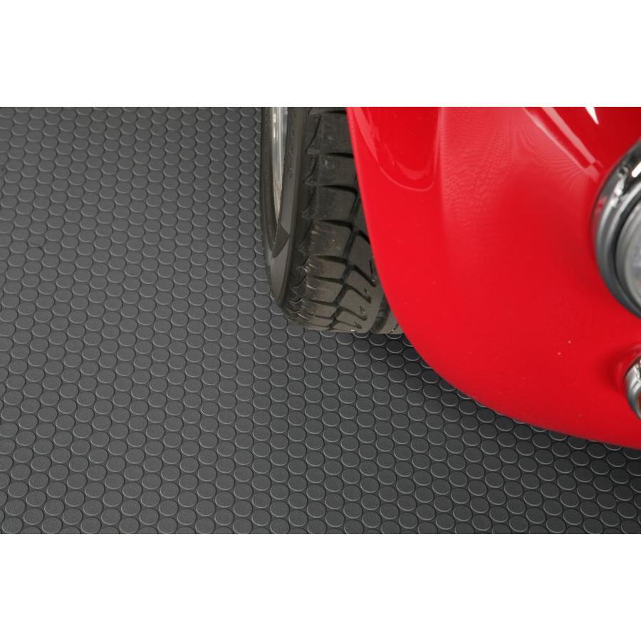 G-Floor Slate Grey Coin pattern creates a durable attractive appearance 100% Polyvinyl all the way through, no layers or fillers to break down and cause deterioration, plus strong traction for slip resistance Waterproof protection keeps liquids on the surface allowing for easy cleanup Can be installed over concrete or wood sub-floors, with or without adhesive Simply clean with a damp mop or for a deeper cleaning use a de-greasing vinyl floor cleaner as directed Easy to cut and trim for a custom fit using just a utility knife Measures 0.06-in base thickness 0.090-in overall thickness and 7-1/2-ft wide x 17-ft long to cover 127-1/2-sq-ft - a great size for a single vehicle parking pad Helps prevent concrete deterioration and hides cracks and stains Backed by a limited lifetime warranty