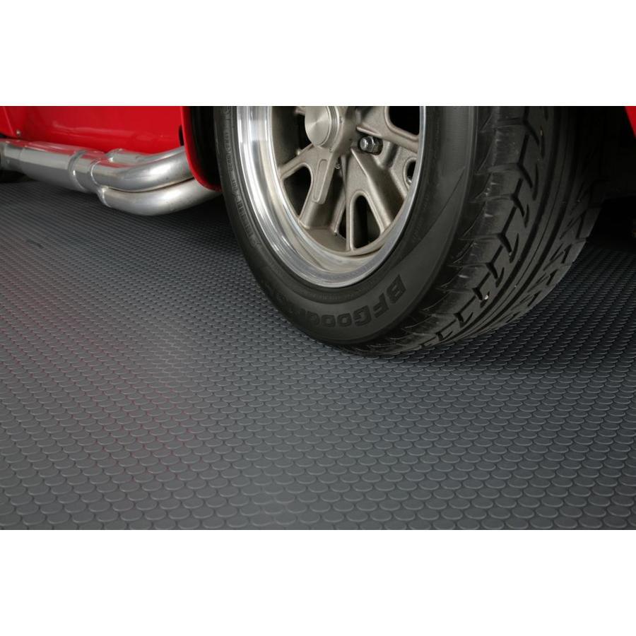 G-Floor Slate Grey Small Coin creates an attractive appearance and great traction 100% Polyvinyl all the way through, no layers or fillers to break down and cause deterioration, plus strong traction for slip resistance Waterproof protection keeps liquids on the surface allowing for easy cleanup Can be installed over concrete or wood sub-floors, with or without adhesive Simply clean with a damp mop or for a deeper cleaning use a de-greasing vinyl floor cleaner as directed Easy to cut and trim for a custom fit using just a utility knife Measures 0.06-in base thickness 0.090-in overall thickness and 8-1/2-ft x 22-ft to cover 187-sq-ft - a great size for a single car garage Helps prevent concrete deterioration and hides cracks and stains Backed by a limited lifetime warranty