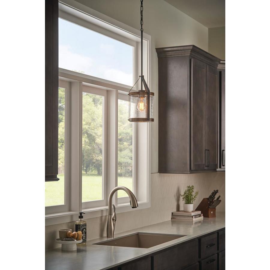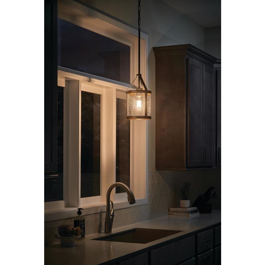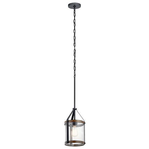 Kichler Barrington Distressed Black and Wood Rustic Seeded Glass Cylinder Pendant Light