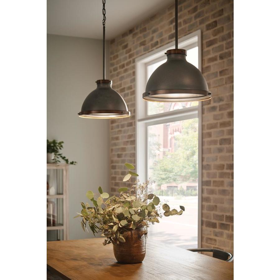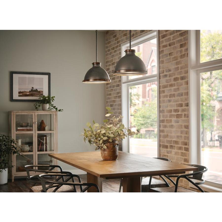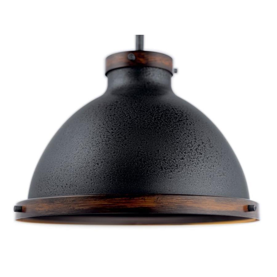Kichler Matte Black and Aged Faux Wood Rustic Dome Pendant Light