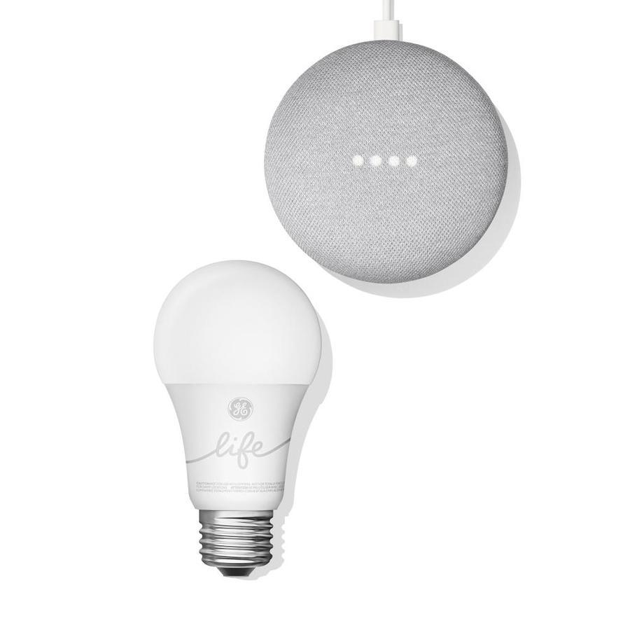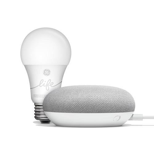 Easy and seamless set up just plug in Google Home Mini screw in the GE c-life light Bulb and download the Google Home app Set the mood and dim the lights for a family movie night without leaving the couch Say goodnight and create a routine so you can turn off the lights while staying cozy in bed A powerful little helper - Get hands-free help in any room with Google Home Mini - It's powered by the Google Assistant Get answers from Google - Use your voice to quickly find information about the weather news sports and more Control your smart home - Use your voice to control your compatible lights thermostats and more Fun for the whole family - Learn something new play fun games and listen to stories with the Google Assistant