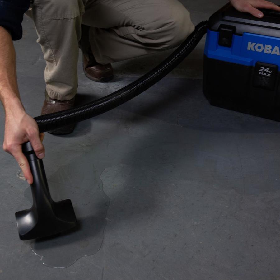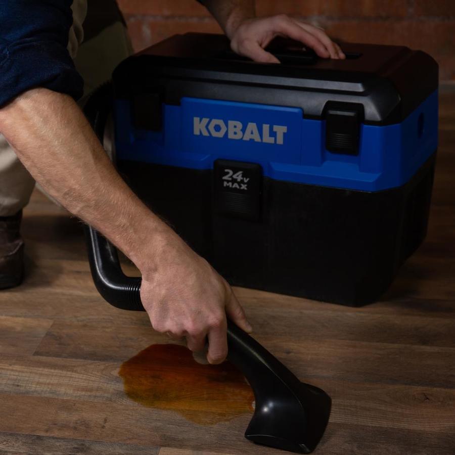 Powerful motor produces air volume of up to 50 CFM and water lift of 38-in Accessories included: 7-ft hose (1-1/4-in diameter), crevice tool, floor tool, and a washable H13 HEPA filter (ARB265W item #1206701) High-efficiency washable HEPA filter traps 99.7% of dust as fine as 0.3 microns Convenient top compartment to easily store and transport your accessories and battery Easy-open latches, on bottom debris and water canister, makes it easy to empty An additional replacement filter can be purchased separately - ARB265W item #1206701 5-Year warranty gives you peace of mind Compatible with all Kobalt 24-volt max batteries and chargers (sold separately)