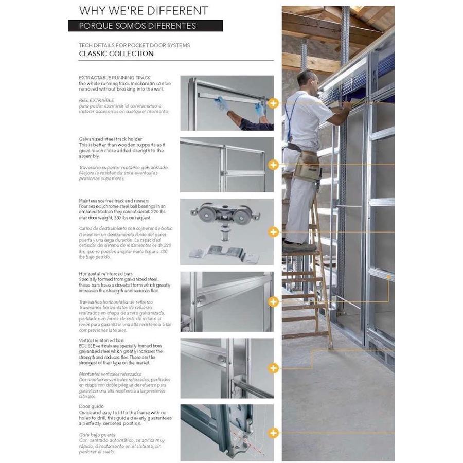 Frames: the most quality pocket door system on the market; frames are all galvanized steel and no longer use wood components