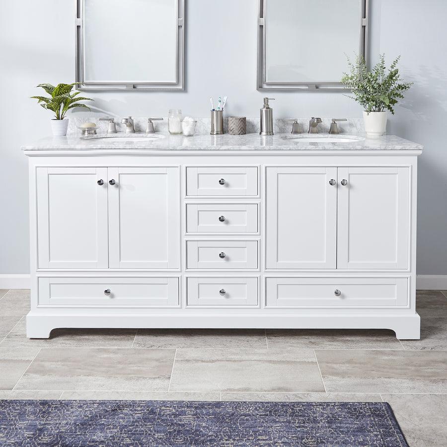 Wyndham Collection Deborah 72-in White Double Sink Bathroom Vanity with White Carrara Marble Natural Marble Top