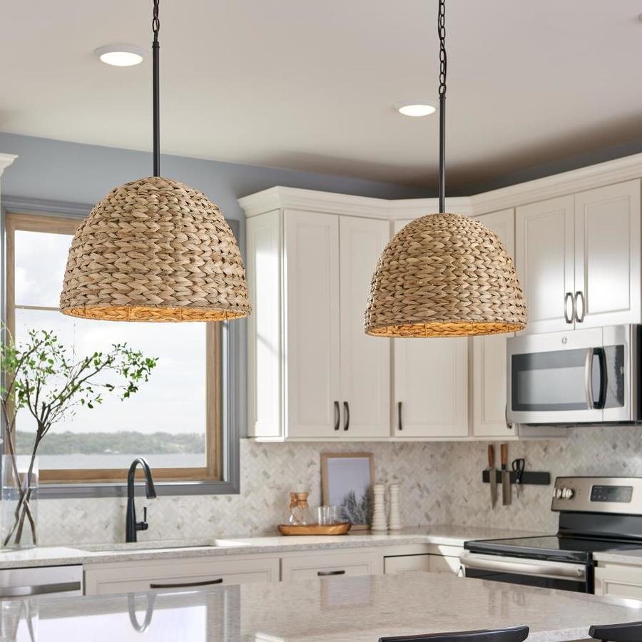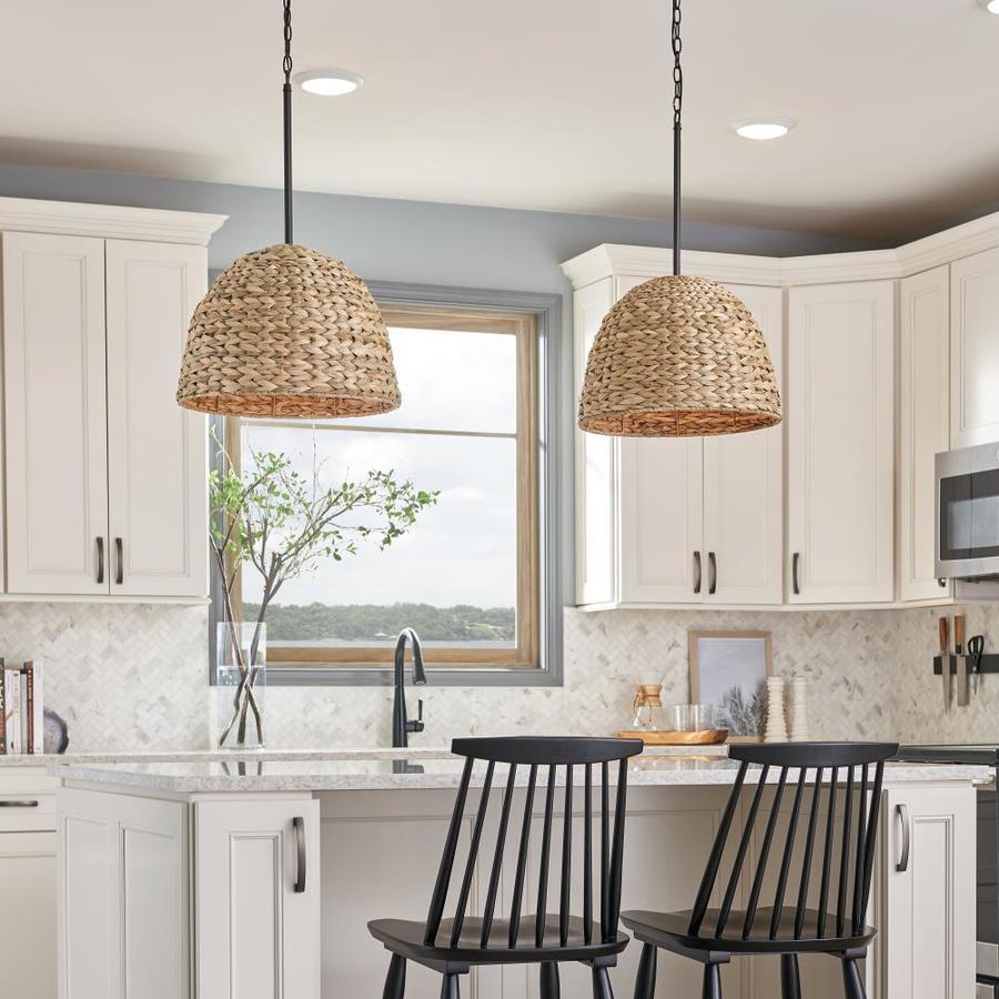 The light olde bronze finish has a rich appearance Features a white acrylic globe and a rattan shade cover Requires one 60 watt medium base bulb (sold separately) Fixture dimensions: 14-in H x 18-in diameter All mounting hardware and detailed instructions are included for an easy installation ETL certification indicates that this fixture has met the minimum safety standards of a widely recognized testing organization Coordinate with other fixtures from the Raffiana collection for a relaxing and comfortable atmosphere