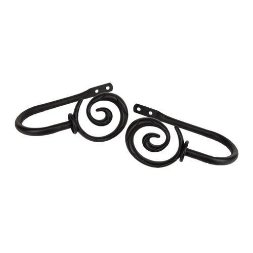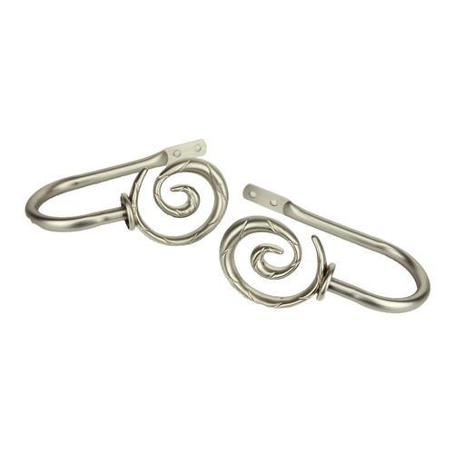 Enhance the beauty of your drapery installation with these spiral finial holdbacks This holdback set includes 2-finials and 2-j hooks Each spiral finial measures 2.375-in L x 2.875-in H x 0.5-in D 3-in projection from the wall Constructed of steel 1-year limited warranty