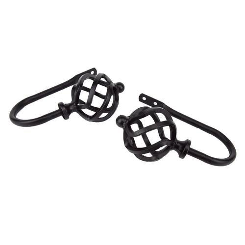 Rod Desyne Twist 2-Pack Black Steel Curtain Holdbacks
