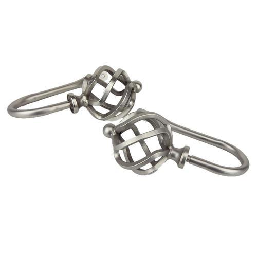 Enhance the beauty of your drapery installation with these twist finial holdbacks This holdback set includes 2-finials and 2-j hooks Each cage finial measures 3.25-in L x 2.625-in H x 2.625-in D 3-in projection from the wall Constructed of steel 1-year limited warranty