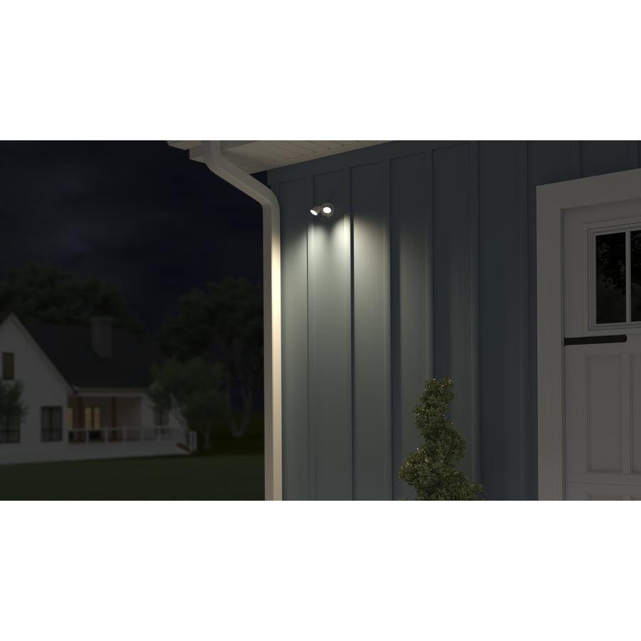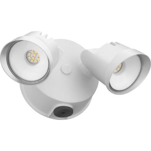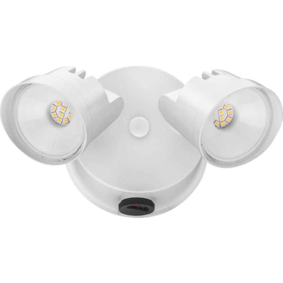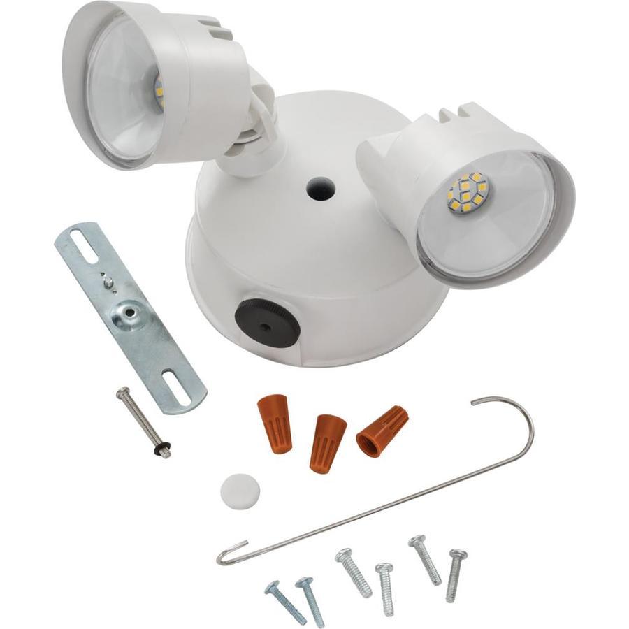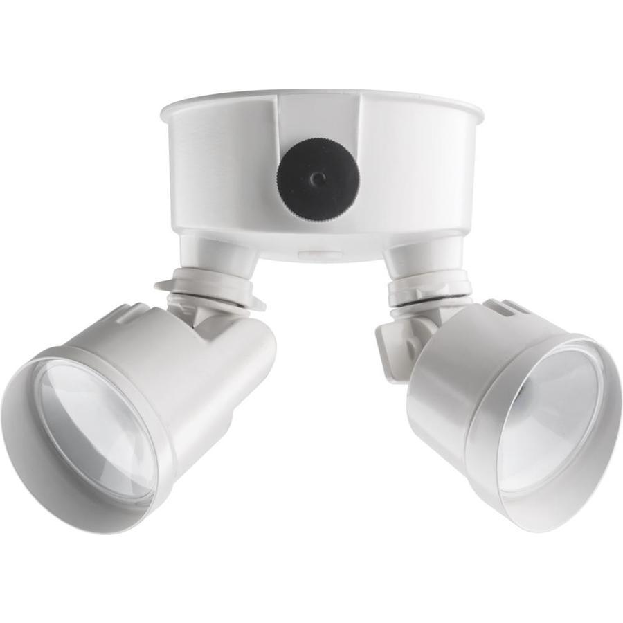 Outdoor Bronze 2 round head security light offers 4000K light with a dusk-to-dawn sensor OVFL 2RD replaces up to (1) 150W par incandescent lamp offering 87% energy savings Photocell (dusk-to-dawn) UL/cUL listed Listed to U.S. and Canadian safety standards for wet locations and tested in accordance with IESNA LM-79 and LM-80 standards 120 V and easily mounts to ceiling or wall over a recessed junction box LEDs maintain 70% of light output at 35,000 hours of service life Rugged cast-aluminum corrosion-resistant housing with polyester powder paint for lasting durability along with a diffuse polycarbonate lens which is designed for even light distribution and sealed to keep out moisture, dirt and bug One-year limited warranty 6-5/16 in x 4-7/16 in x 5-7/8 in