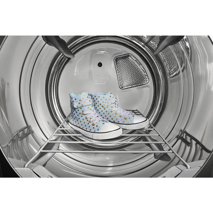 Get room to handle large loads with 7.4 cu-ft capacity Create customized cycles in a few touches with Intuitive Controls Help keep wrinkles from setting with continued tumbling with steam Wrinkle Shield™ Plus option with Steam - helps keep wrinkles from setting into clean, dry fabrics Sanitize cycle - provides care for your clothes in the dryer while eliminating 99.9% of common household bacteria Advanced Moisture Sensing - three sensors track moisture and temperature, adapting drying times to end the cycle at just the right time Stainless steel dryer drum - clothes are gently cradled as they tumble around the smooth surface Dryer rack - place bulky or delicate items like sweaters, pillows, hats and tennis shoes on the dryer rack for tumble-free drying Quad baffles - four baffles tumble clothes in a randomized pattern, allowing items to open up freely - this helps increase the effectiveness of the dryer for small loads