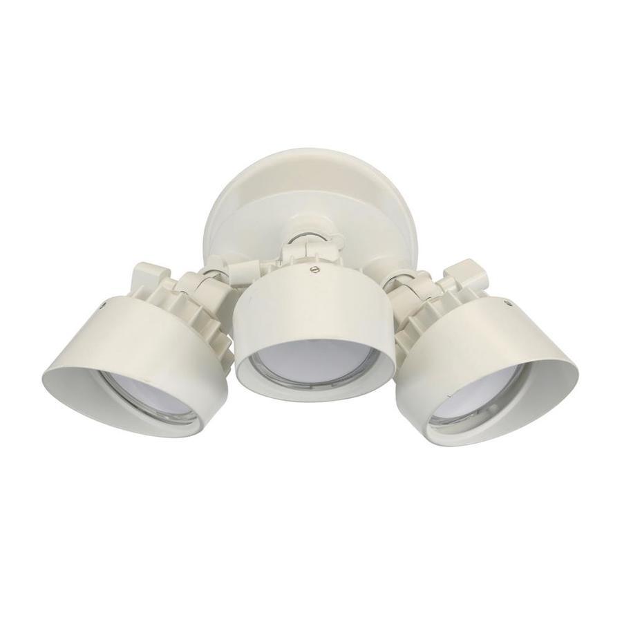 Outdoor White 3 round head security light offers 4000K light with a hardwired on/off capability