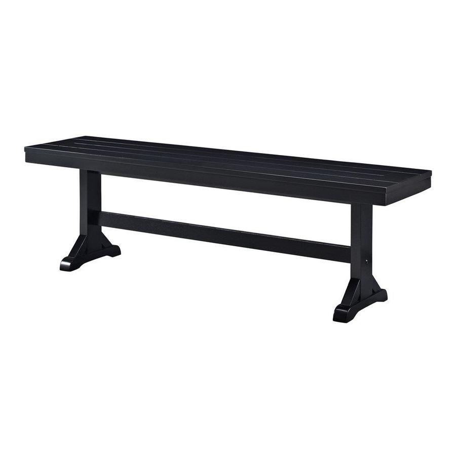 Featuring trestle style legs for a traditional design Made of warp-resistant MDF with a solid wood veneer finish Purposeful, wormhole distressing adds timeless style In a rich, antique brown finish Perfect for added seating in your entryway, kitchen, or dining room Ships ready-to-assemble with step-by-step instructions