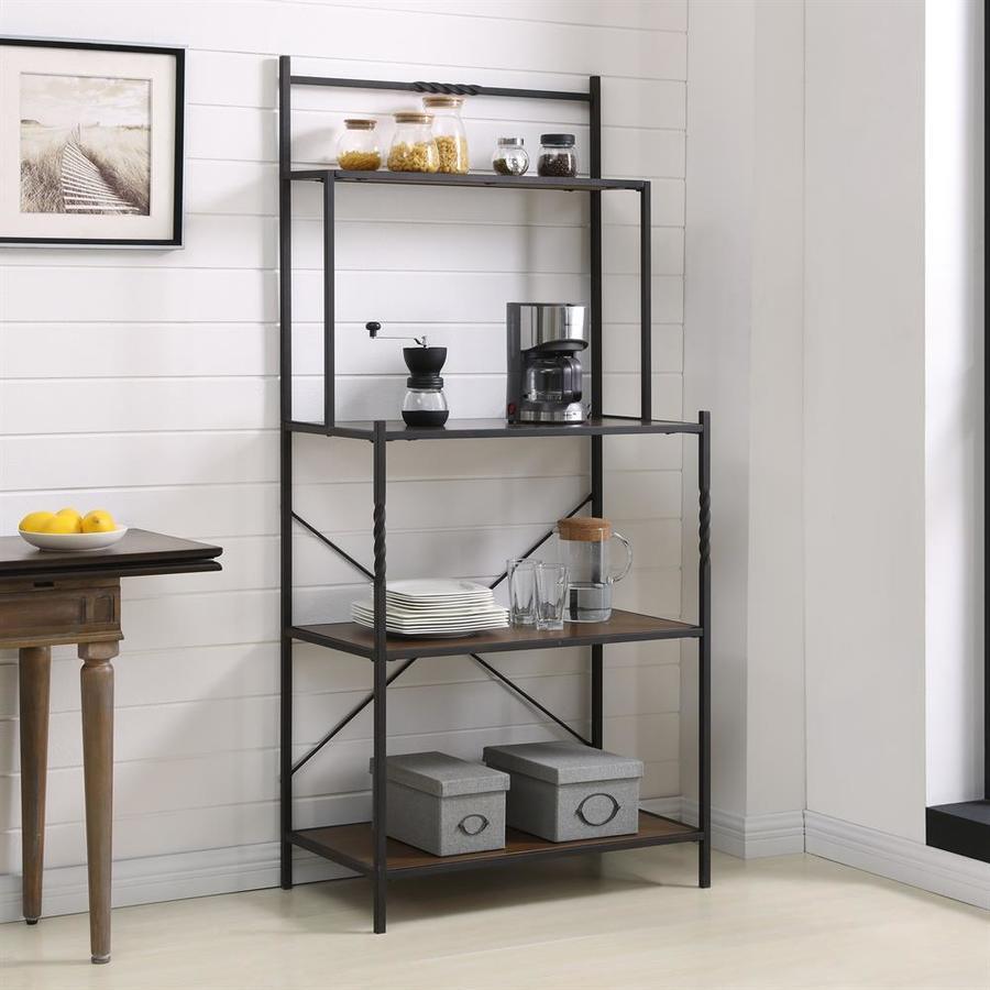 Boston Loft Furnishings Dark Distressed Pine Metal Bakers Rack