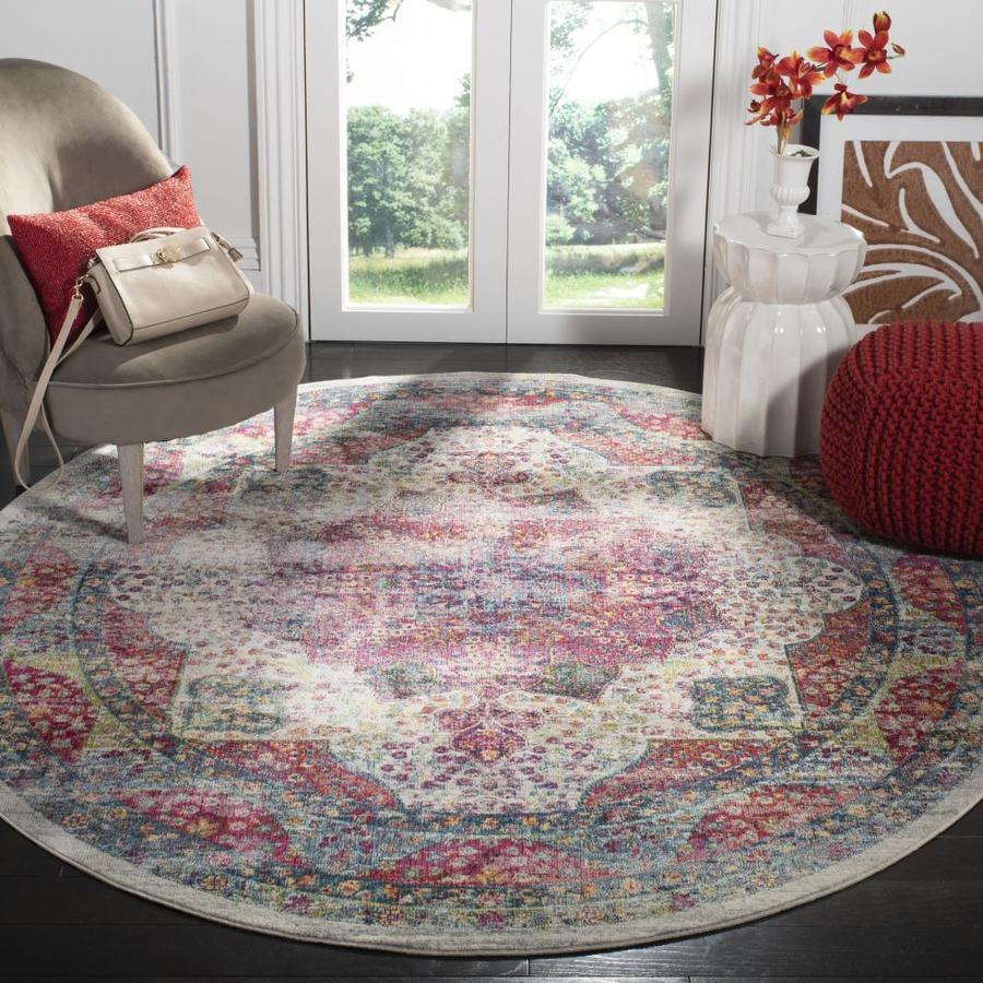 Safavieh Merlot Angra 7 x 7 Cream/Multi Round Indoor Floral/Botanical Oriental Area Rug