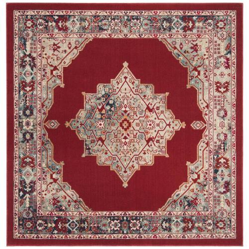 Safavieh Merlot Mitra 6 x 6 Red/Aqua Square Indoor Floral/Botanical Oriental Area Rug