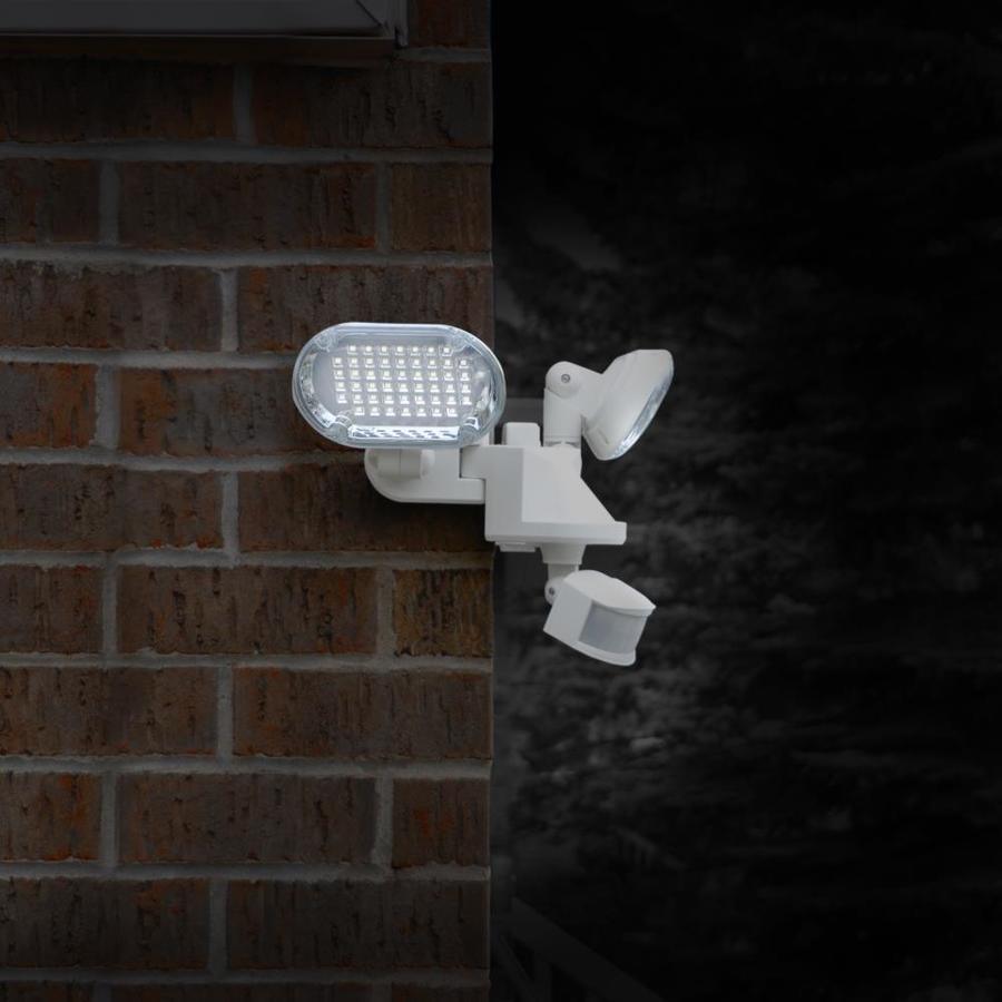 Using the power of the sun, light any dark area and add extra security with the Sunforce 100 LED twin head solar motion light Mounts easily to both flat and corner surfaces, adjustable lamp heads for optimal lighting coverage Ideal for all locations: entryways, garages, pathways, sheds, and remote areas Amorphous solar panel charges in all daylight conditions, does not need direct sunlight Charges during the day and works at night Detection distance: 30 feet (9.1 m); detection range: 180 degrees, 2 adjustable settings: detection distance and light duration Fully weather resistant and can be mounted almost anywhere, maintenance-free, no main power or wiring required The newly designed light mounts easily to both flat and corner surfaces, this light automatically turns on when motion is detected and comes equipped with 100 super bright white LED, ensuring reliable lighting power for whenever, wherever you need it Maintenance free