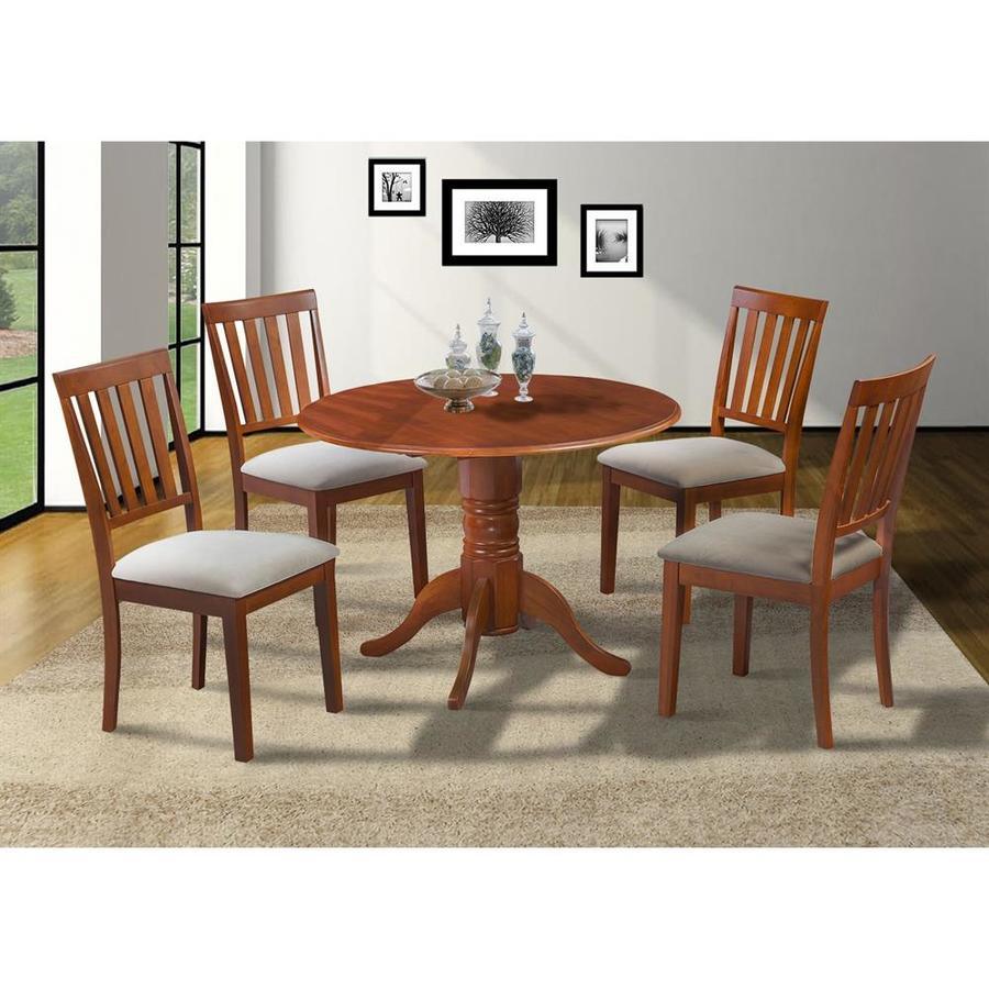 M&D Furniture Burlington Saddle Brown Wood Round Dining Table with Saddle Brown Wood Base
