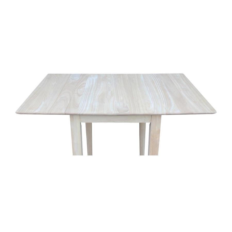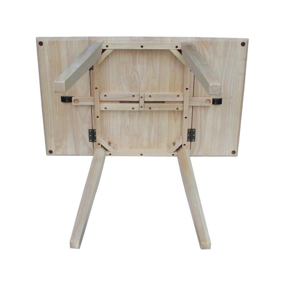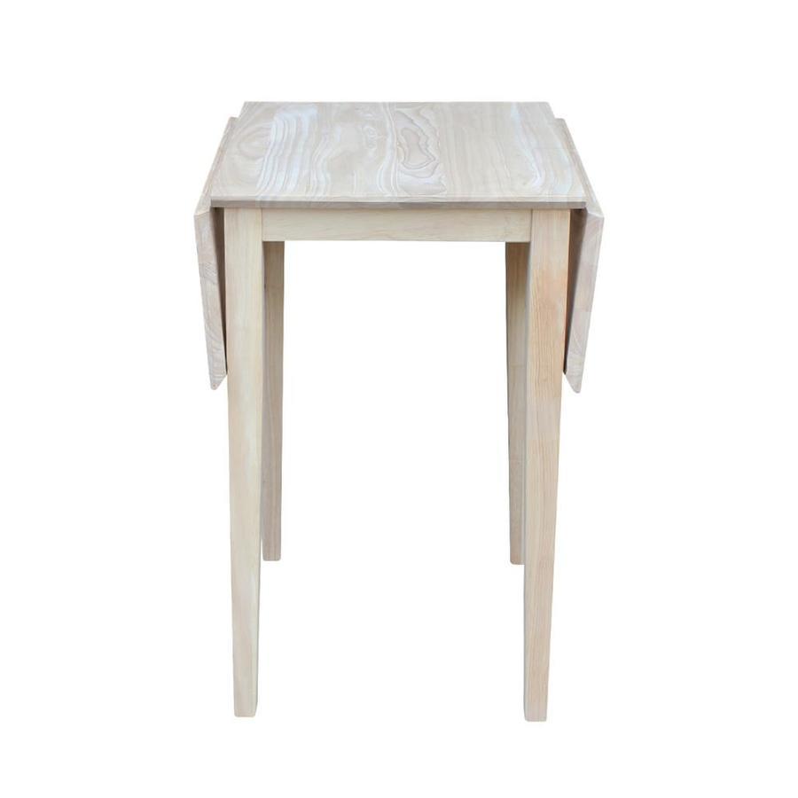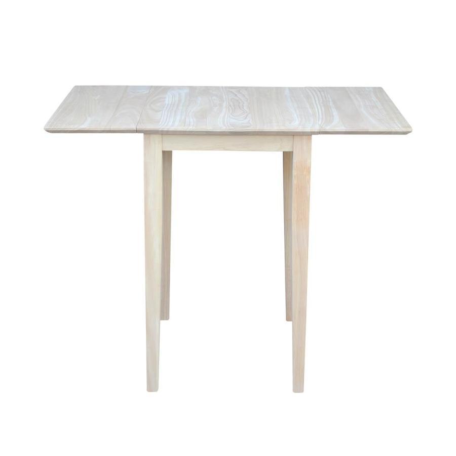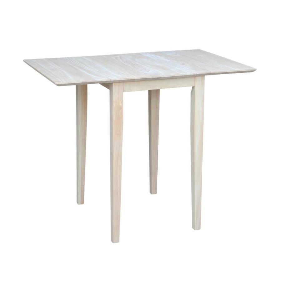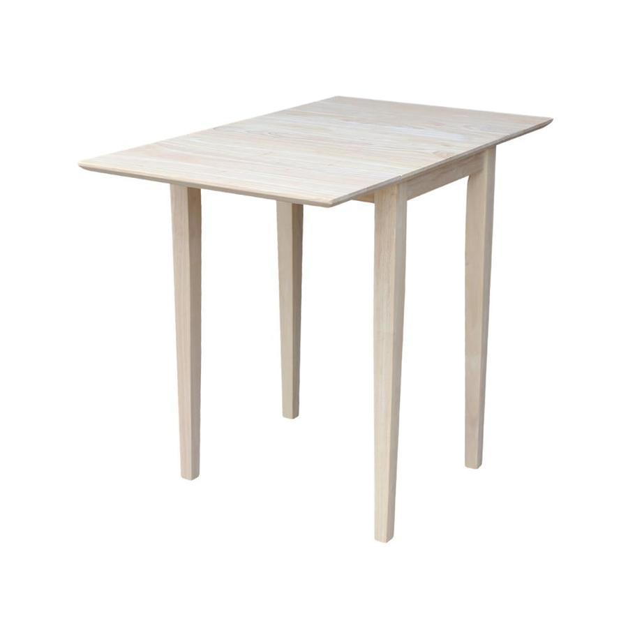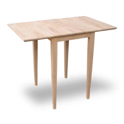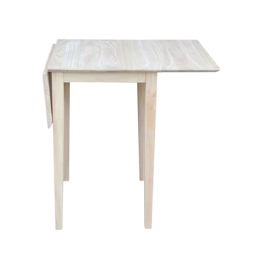 Features dual 9-in drop leaves on each side Constructed of unfinished solid hardwood Table dimensions: 20.6 in W x 36 in D x 29 in H Floor to apron - 26.5 in Ready to assemble Not rated for commercial use, for residential use only