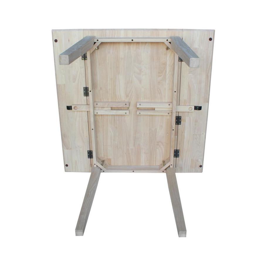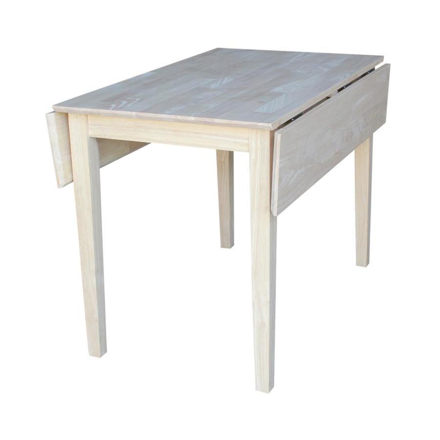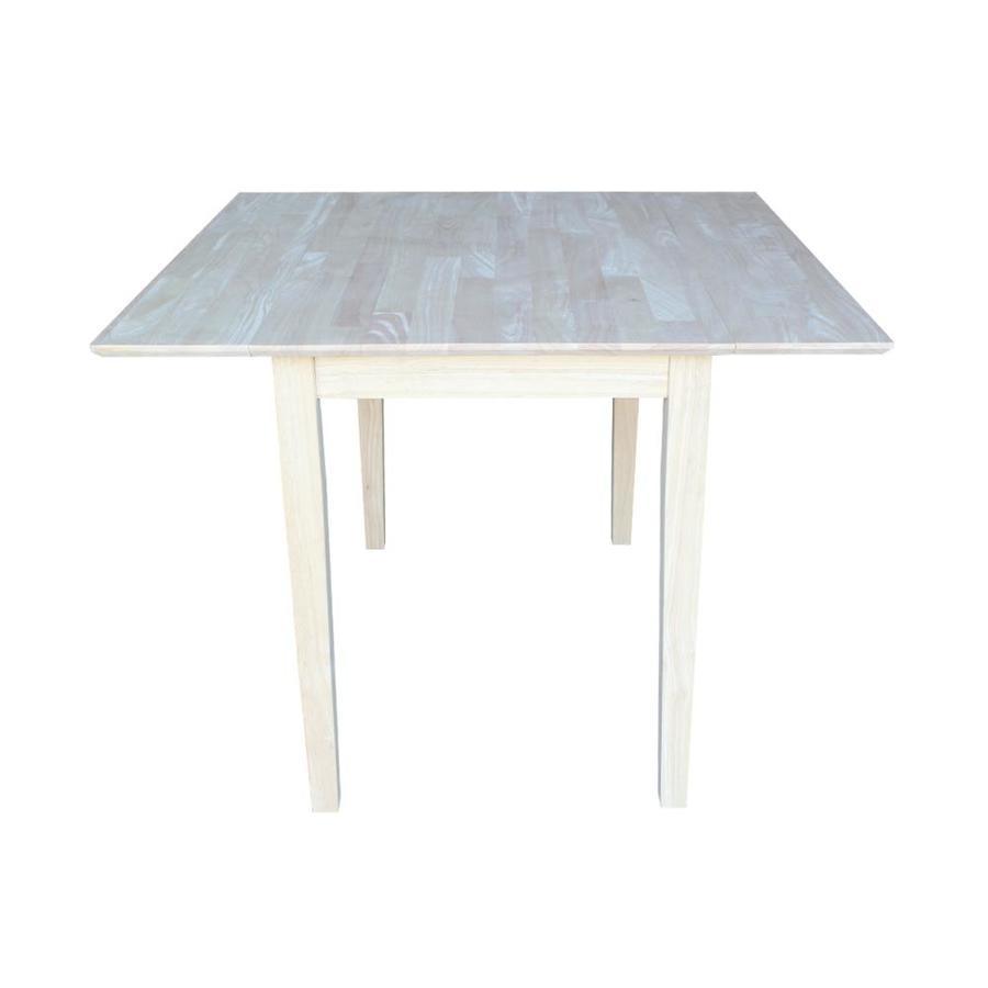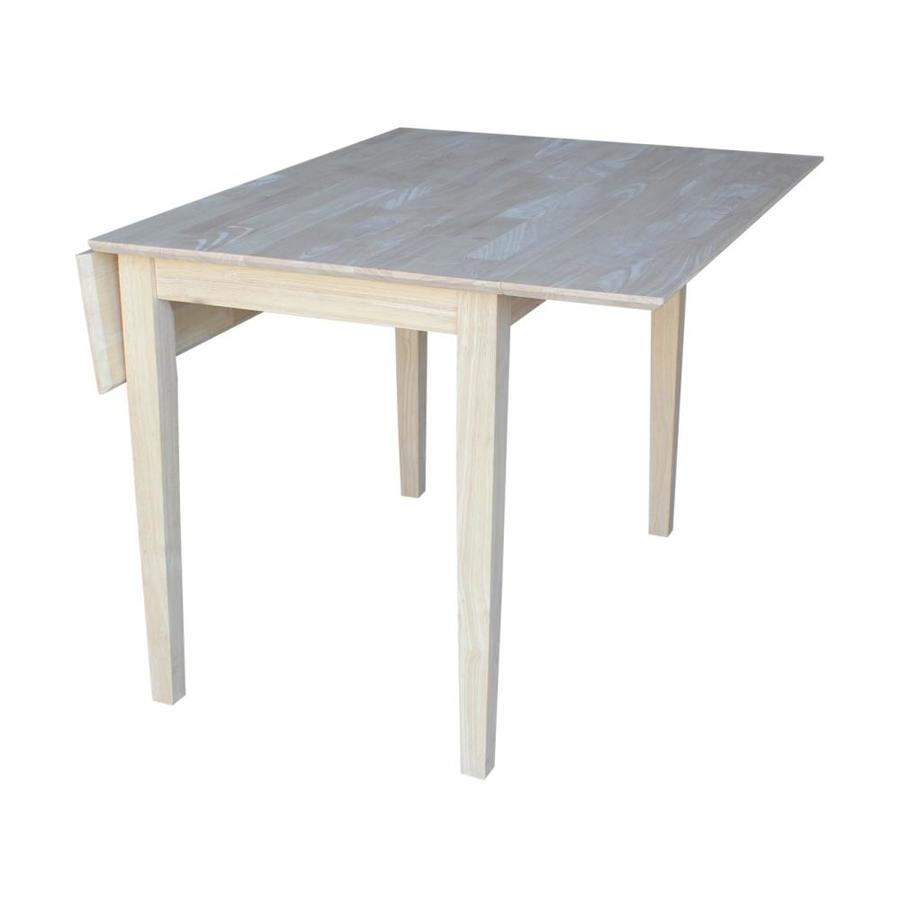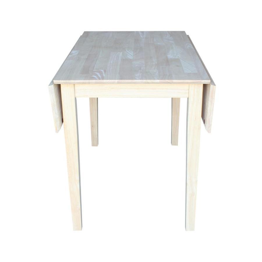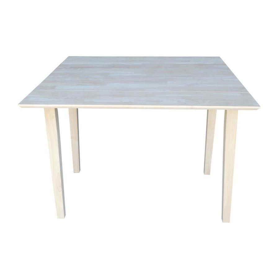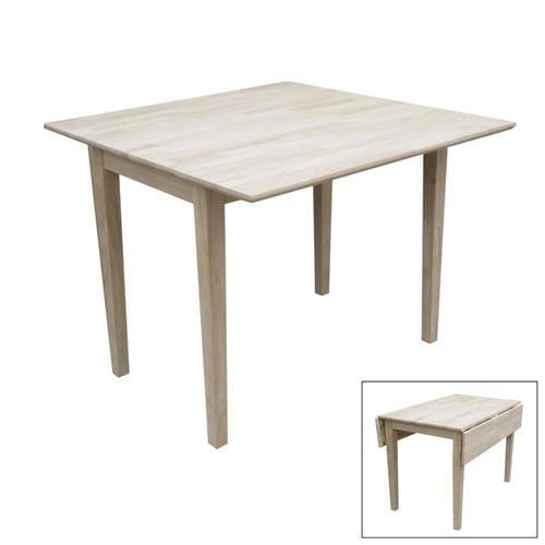 Solid wood dining table with butcher block top Table dimensions: 40 in W x 40 in D x 29 in H Two 8 in drop leafs Size of table with leaves down 24 in x 40 in Ready to assemble Not rated for commercial use, for residential use only