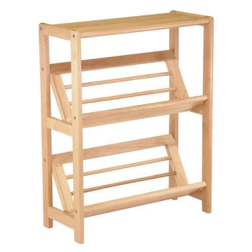 2-Tier, tiled shelves for books Shelf dimensions: 22.4 In. W x 4.3 In. D x 11.8 In. H Natural finish Assembly is required