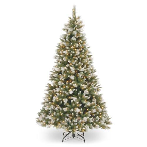 This Frosted Alaskan Pine tree features Feel Real® branch tip technology, creating a tree with remarkable realism These crush-resistant branch tips are molded from real tree branches for an authentic living tree appearance This tree also features branch tips dusted in snow and is pre-strung with 550 clear lights that remain lit even if a bulb burns out Three section construction and hinged branches add to ease of assembly Sturdy folding metal tree stand is included Number of tips: 1435