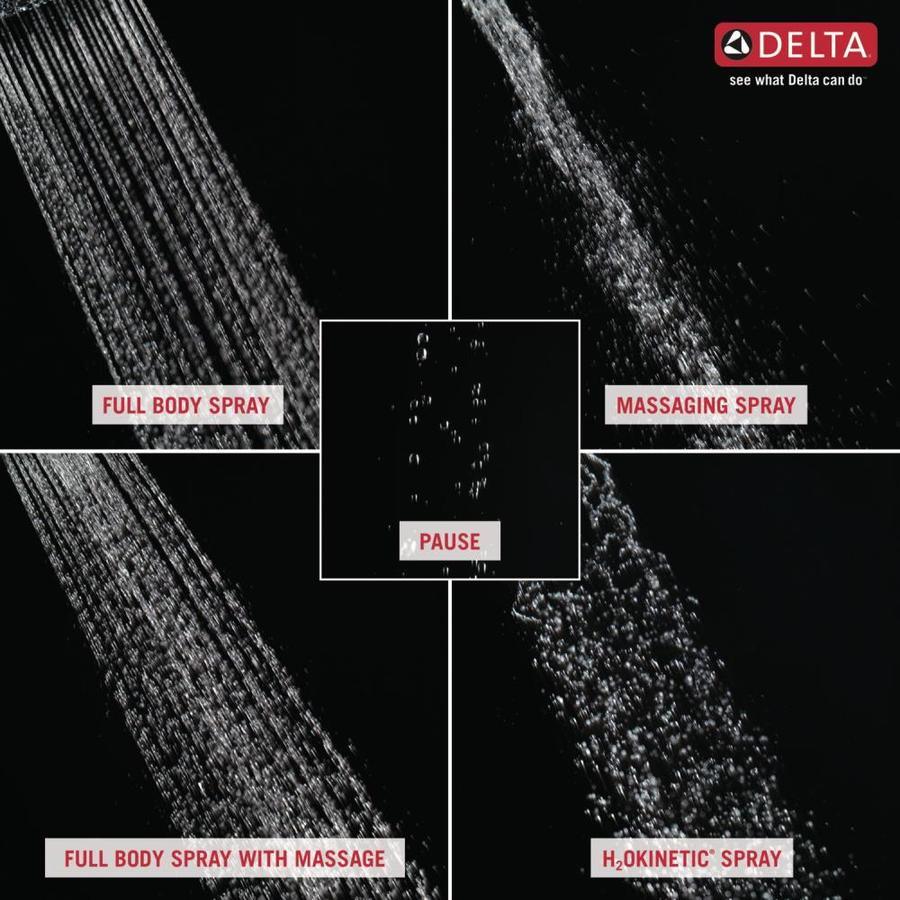 H2Okinetic Shower technology sculpts water into a unique wave pattern, forming a powerful drench spray H2Okinetic gives you the feeling of more water without using more water Trim kit only, must order MultiChoice Universal Valve separately to complete the unit Temperature only controlled with handle 120° maximum handle rotation All parts replaceable from the front of the valve Red/blue pad print temperature indicator on the shower escutcheon ADA Compliant metal lever handle Monitor pressure balance valve keeps water temperature within a safe 3° F (1.6° C), helping to protect you from sudden changes in hot or cold water pressure