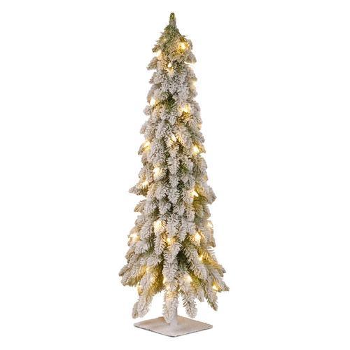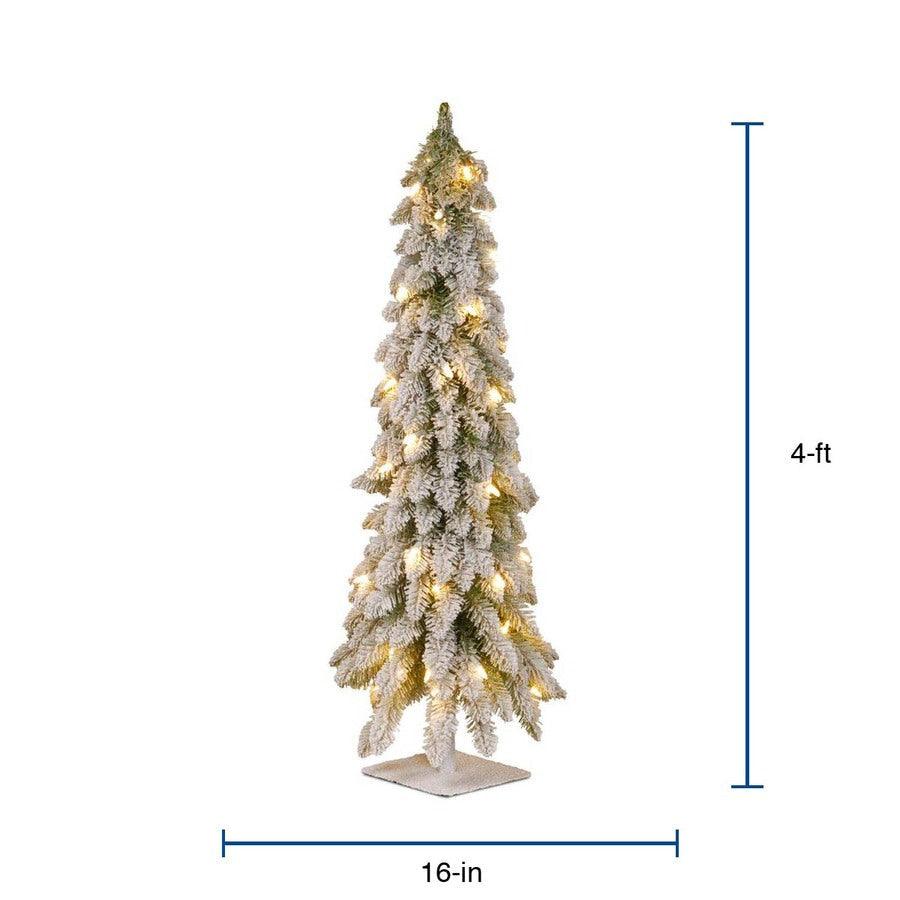 National Tree Company 4-ft Pre-Lit Slim Flocked Artificial Christmas Tree with 100 Constant White Clear Incandescent Lights