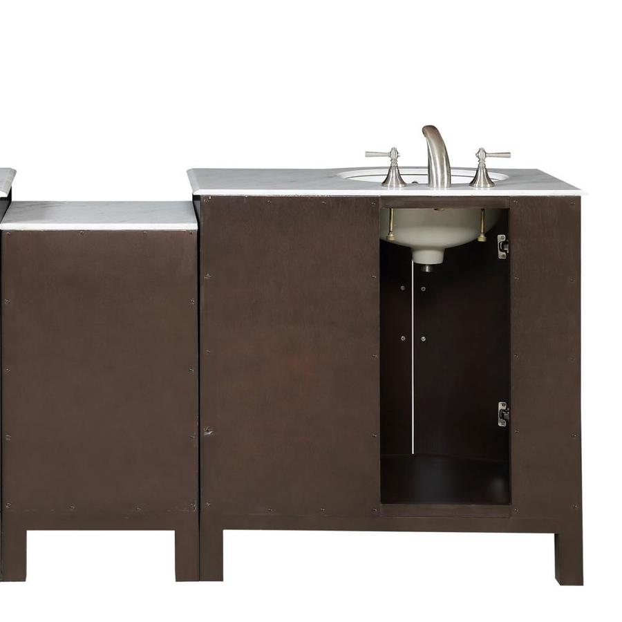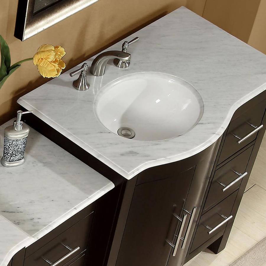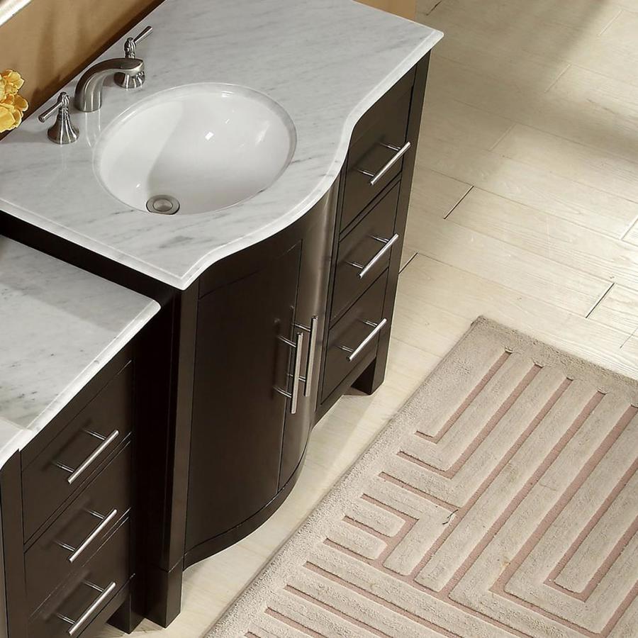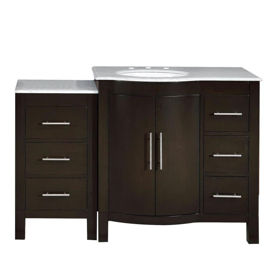 Overall dimensions (inch): 53.5w x 22d x 36h Modern bathroom single sink vanity cabinet Comes with Carrara White Marble countertop Comes with white ceramic undermount sink Natural stone, solid wood structure and TSCA title VI certified panels Pre-drilled for 8-in widespread faucet Drain and faucet are not included