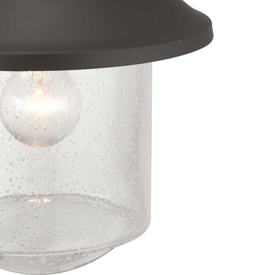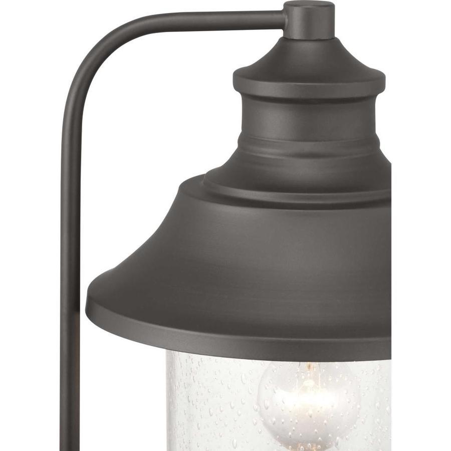 Nautical influences conjure a seaside vibe, no water needed Clear seeded-glass shades resemble ship lights The post lantern features a curved bracket that hangs the light Ideal for exterior walkways
