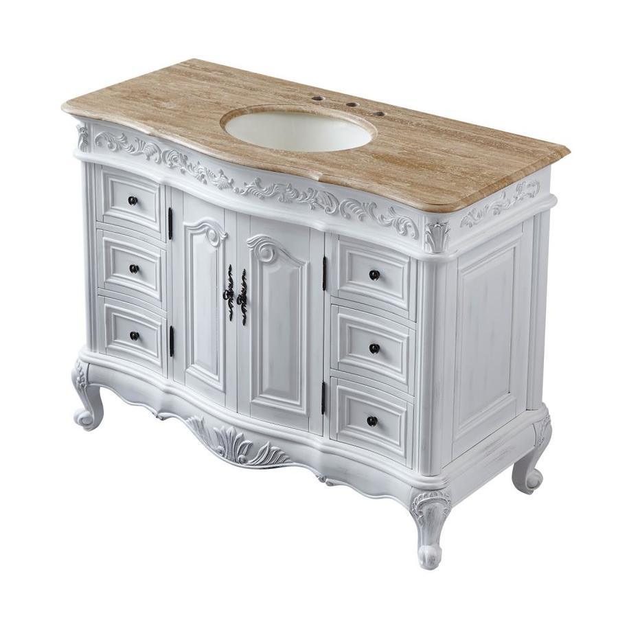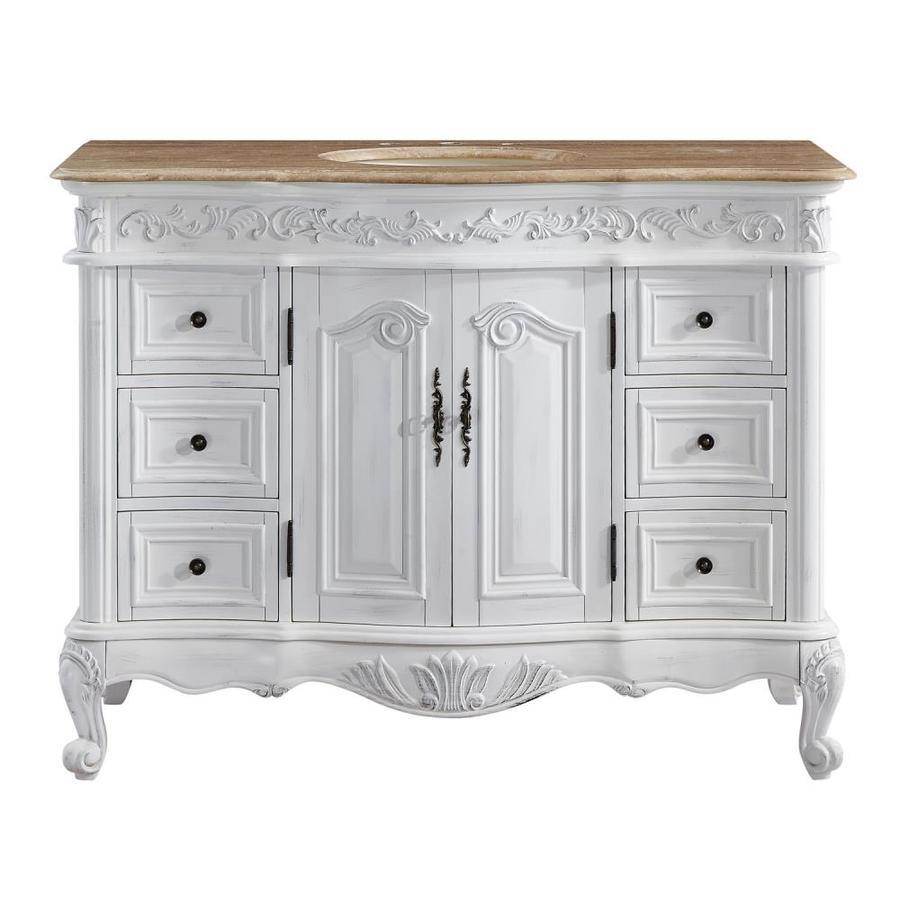 Silkroad Exclusive 48-in Antique White Single Sink Bathroom Vanity with Travertine Top