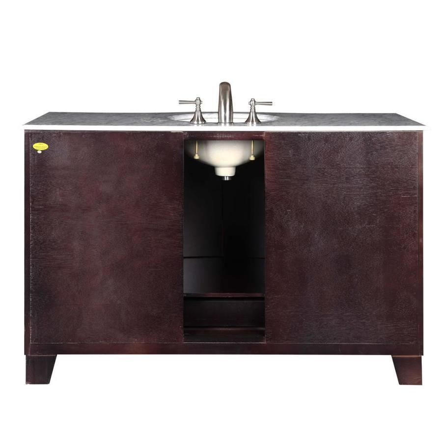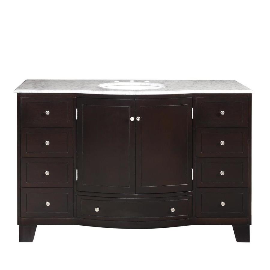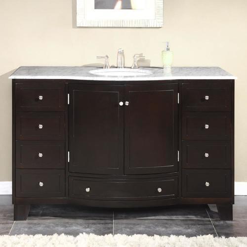 Silkroad Exclusive 55-in Dark Espresso Single Sink Bathroom Vanity with Carrara White Natural Marble Top