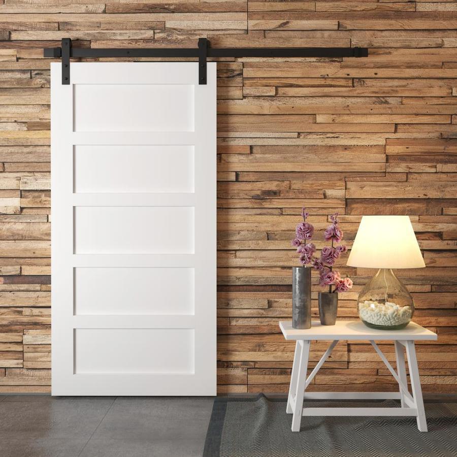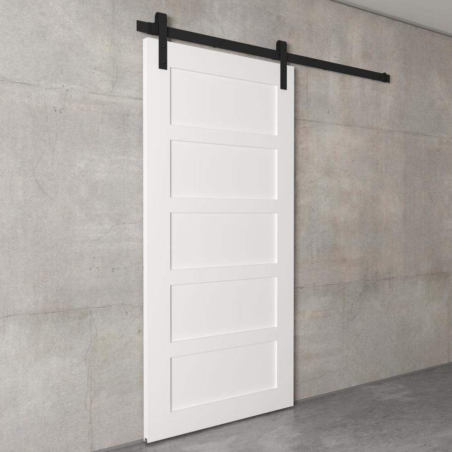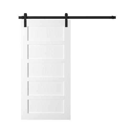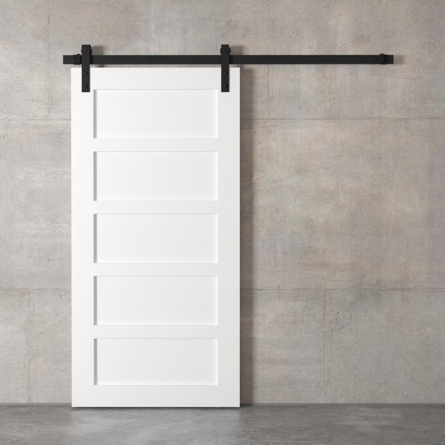 Urban Woodcraft Suburb 40-in x 83-in White 5-Panel Equal Prefinished Pine Wood Single Barn Door (Hardware Included)