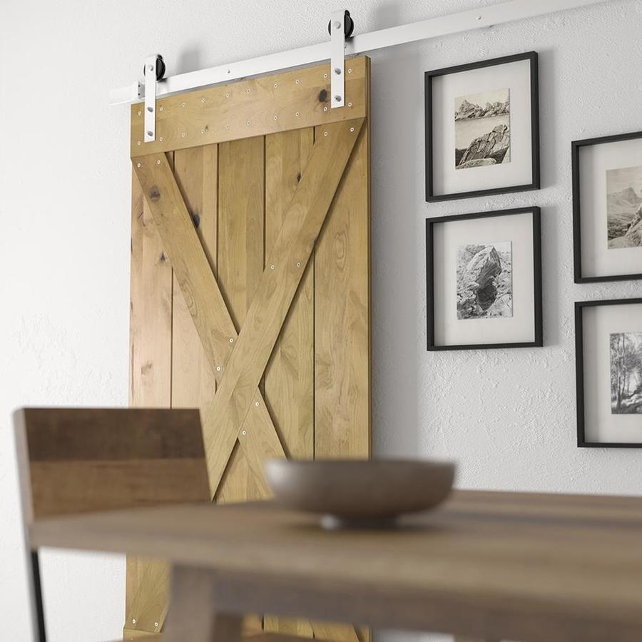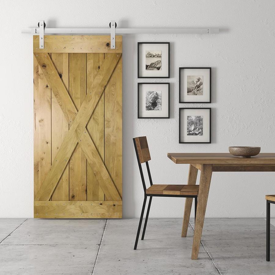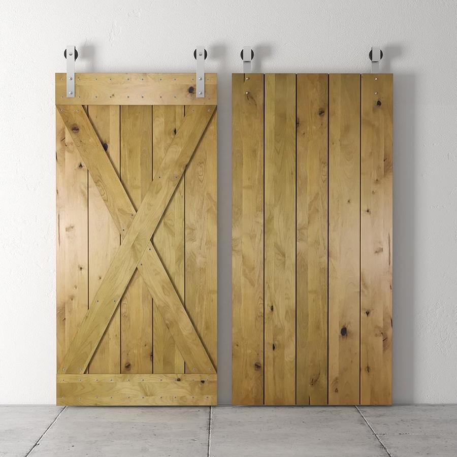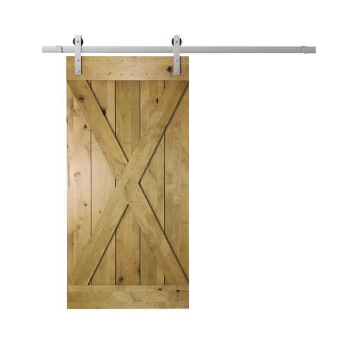 Urban Woodcraft 40-in x 83-in Kotty Alder Wood Crossbuck Prefinished Knotty Alder Wood Single Barn Door (Hardware Included)
