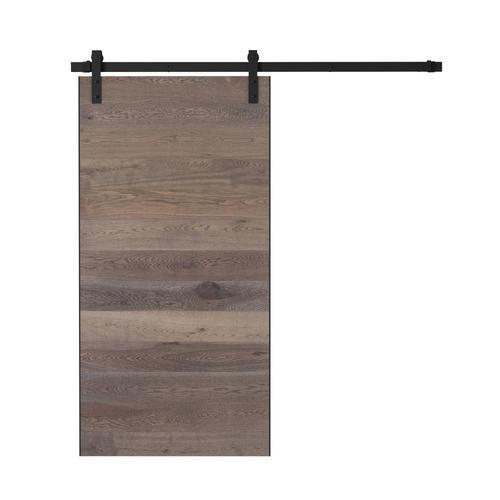 Urban Woodcraft 40-in x 83-in Oak Panel Flush Prefinished Oak Wood Single Barn Door (Hardware Included)