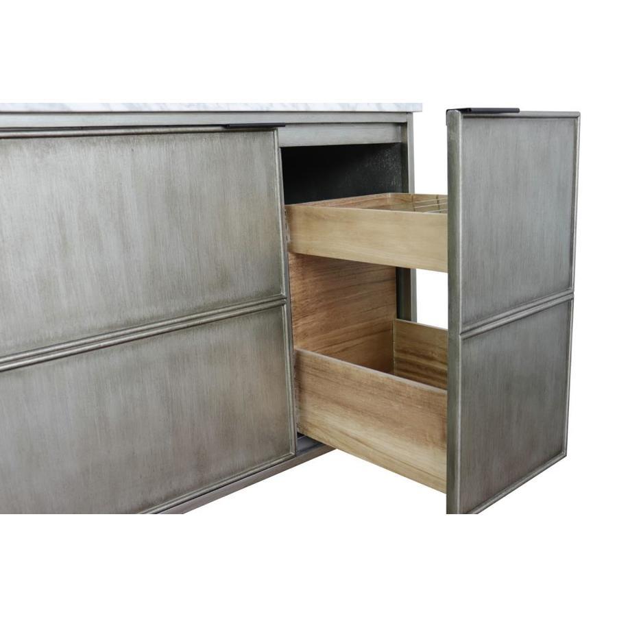 Wood and veneer over plywood construction, no MDF or particle board Each cabinet is configured to work with our variety of countertops or any standard sized tops Full corner block on all corners for stability Interior finish matches the exterior Interior drawer is constructed with English dovetail and smooth full extension glide Soft close hinges Top drawer is equipped with glass divider inserts and a circle cut-out for storing a hair dryer Mounting hardware included Big cutout in the back for easy plumbing installation