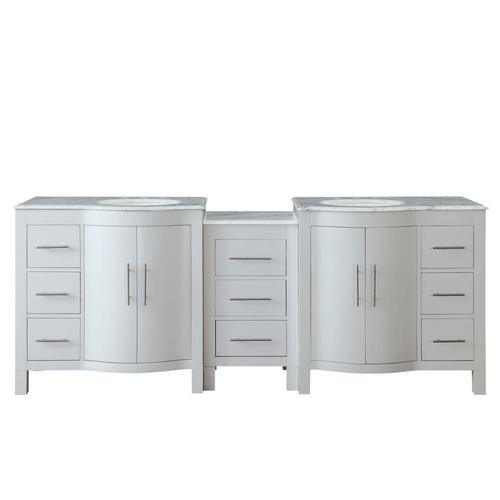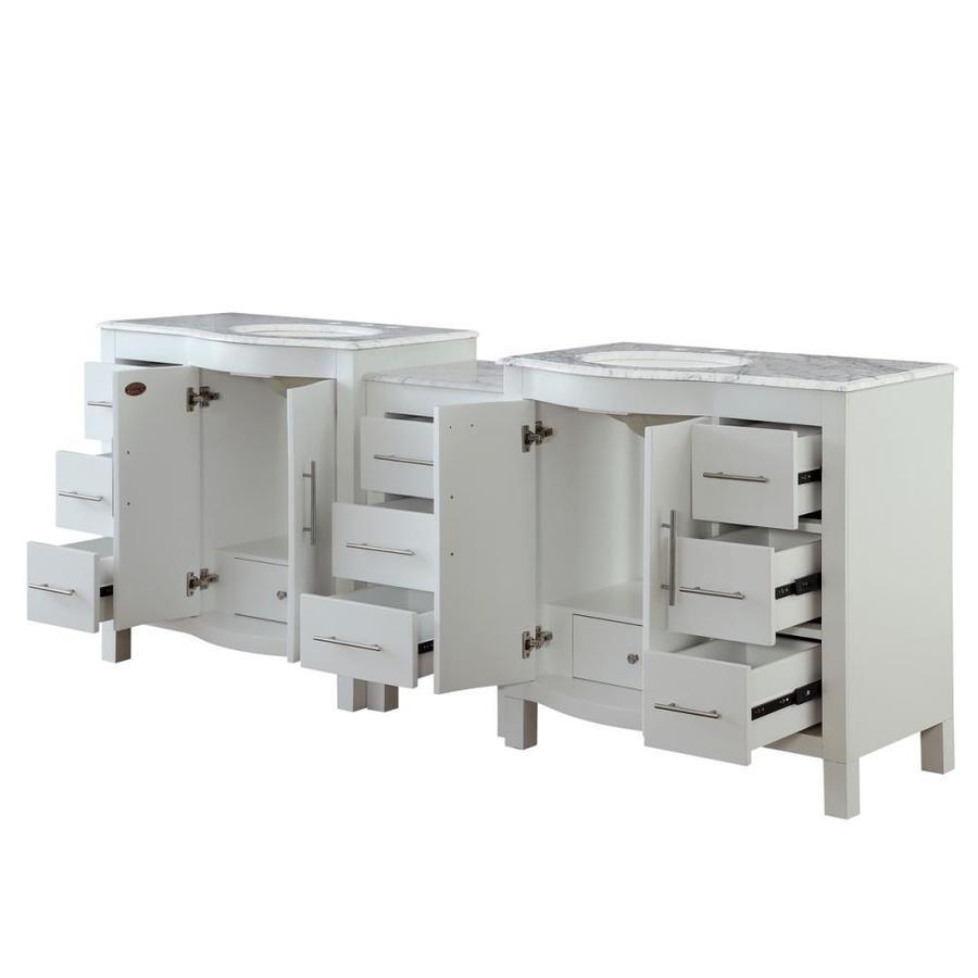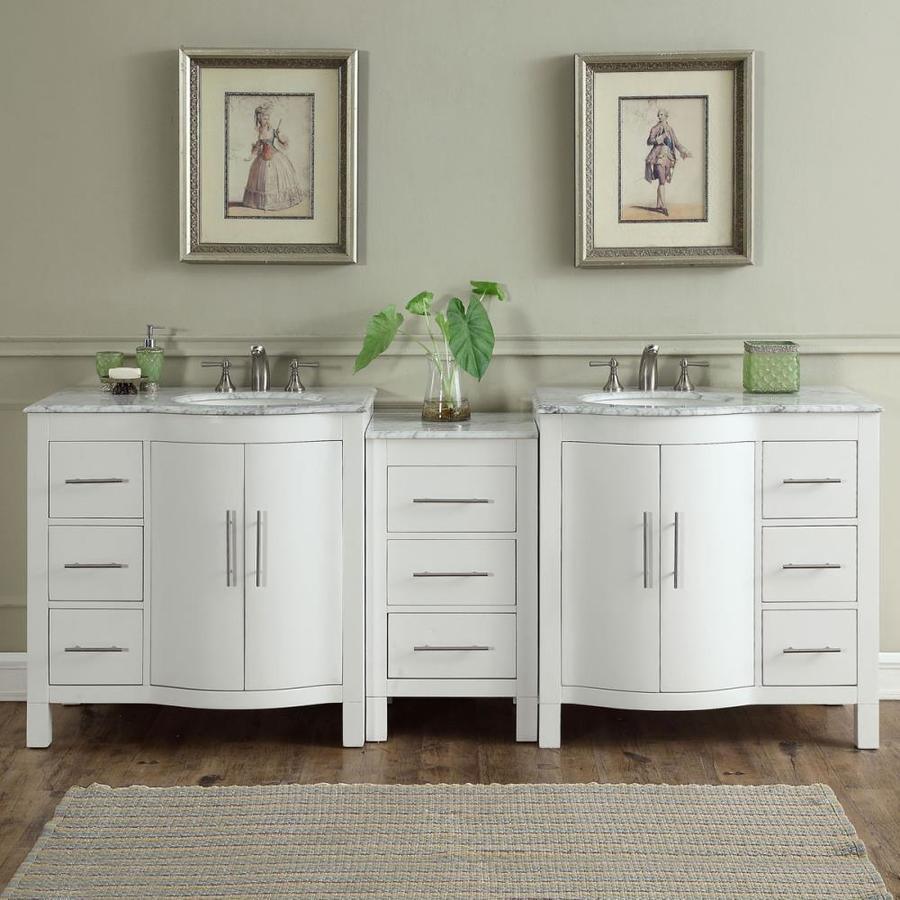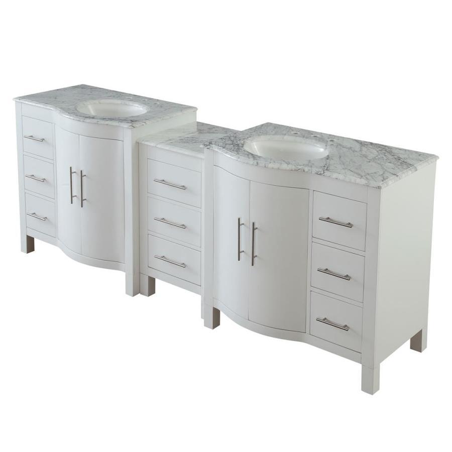 Silkroad Exclusive 89-in White Double Sink Bathroom Vanity with Carrara White Natural Marble Top
