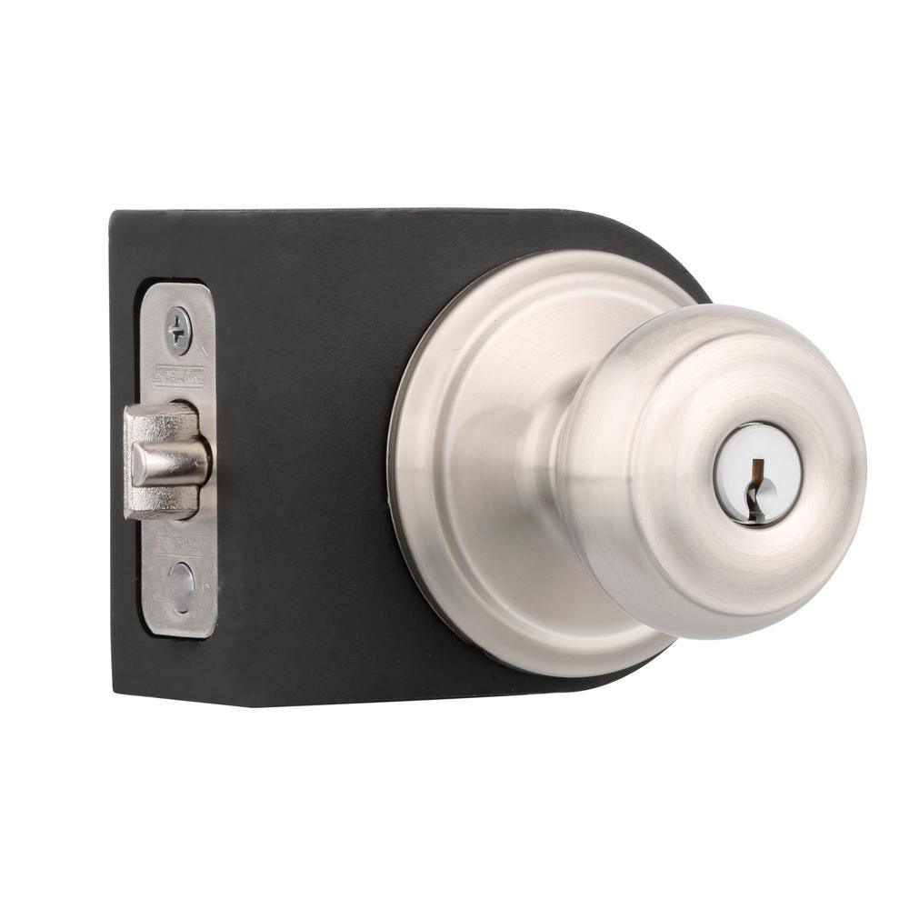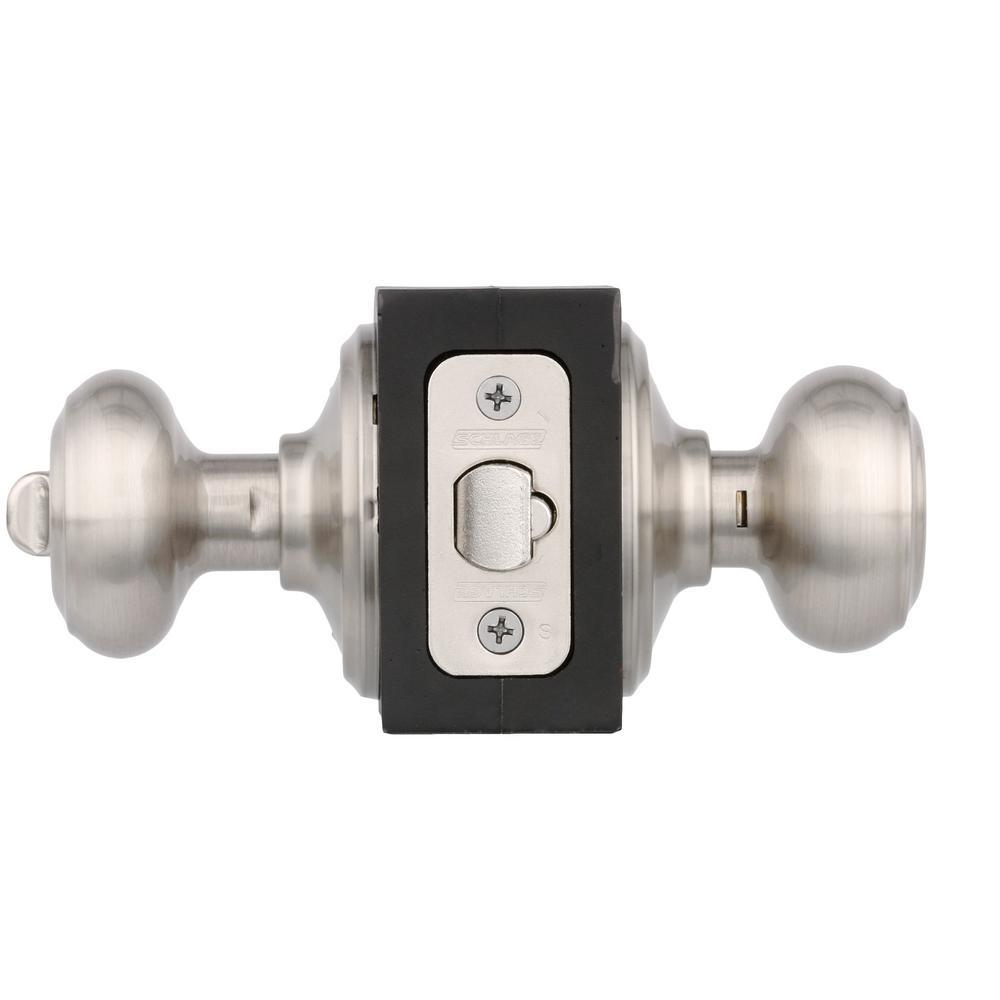 Featuring the Triple Option Latch, the Schlage Georgian Satin Nickel Keyed Entry Knob is designed to fit most door preparations. The working parts are constructed of metal for a long life.