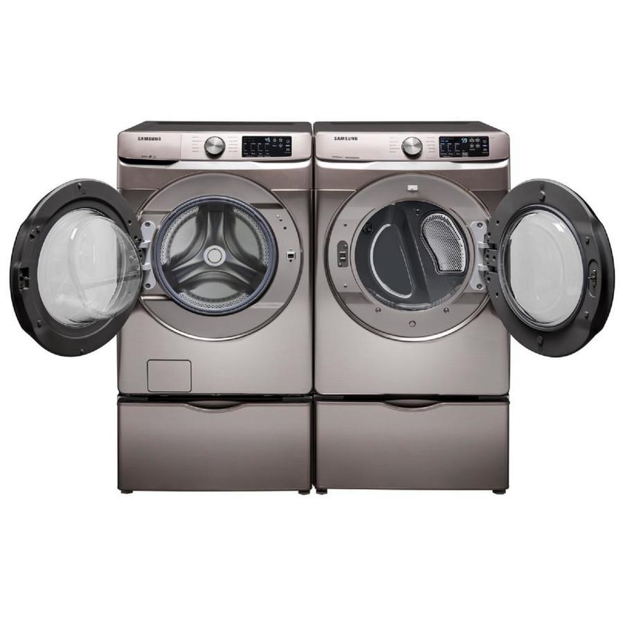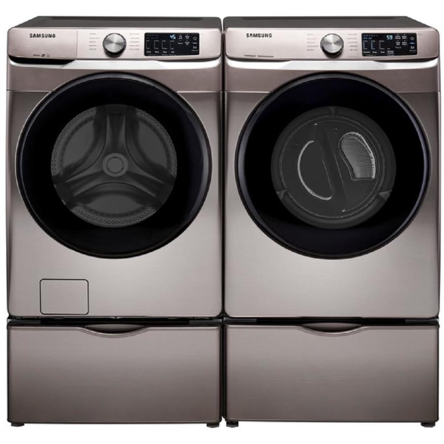 Samsung 7.5-cu ft Reversible Side Swing Door Stackable Steam Cycle Gas Dryer (Champagne)