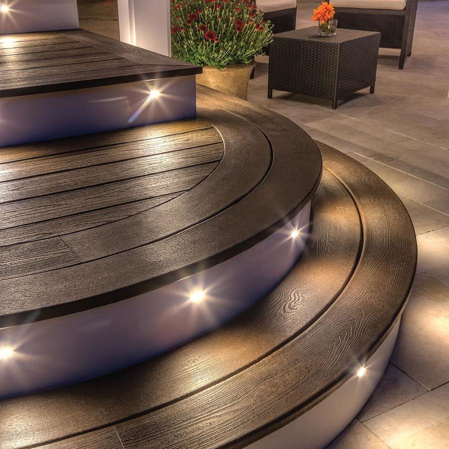 Energy efficient, low voltage LED riser lights provide increased safety, beautiful light and durability Packaging contents includes 4 riser lights with 5-ft 6-in light hub leads Dimmable fixtures that provide a warm color temperature Use with the Trex light hub system for quick and easy installation or use outdoor rated wire nuts and 18 gal outdoor wire Designed to disappear when off, provide beautiful light when on Trex deck lighting is proud to feature Cree LEDs Powder coated aluminum housing Use only with Trex transformers 7-year manufacturer's warranty covers the LED diodes and engine