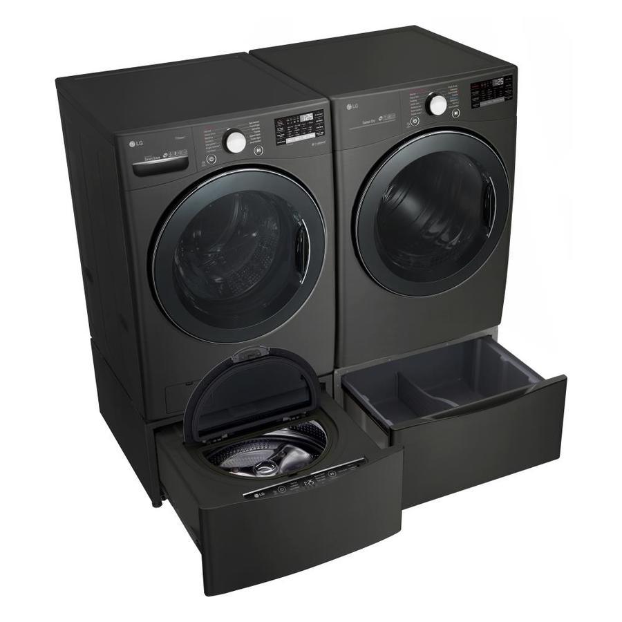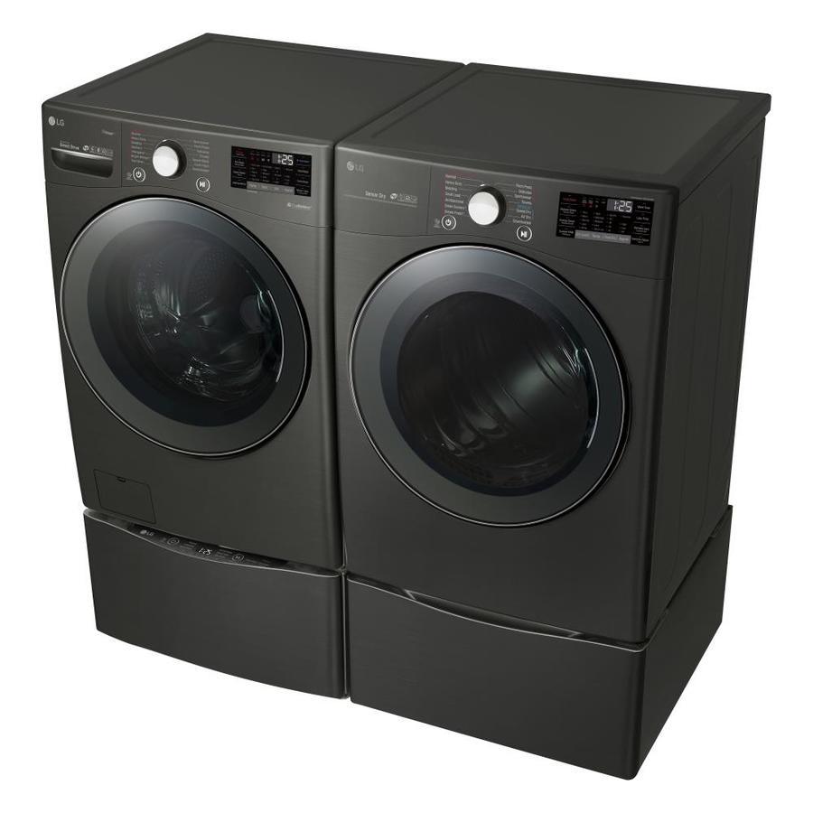With 7.4 cubic feet of capacity, this dryer handles really large loads Give favorite clothes new life in just 10 minutes with LG TurboSteam™ technology Stay ahead of the cycle and access key LG dryer features remotely with ThinQ™ technology With Sensor Dry, the dryer can detect moisture and automatically adjust drying time for loads of all sizes—saving energy with less wear and tear on Troubleshoot quickly and efficiently with SmartDiagnosis™ With the FlowSense™ Duct Clogging Indicator you'll know when it's time to clean the ducts out to ensure great drying every time