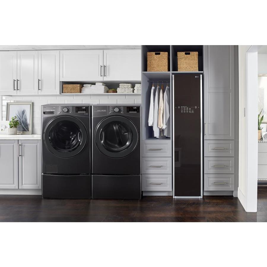 LG TurboSteam Smart Wi-Fi Enabled 7.4-cu ft Stackable Steam Cycle Electric Dryer (Black Steel) ENERGY STAR