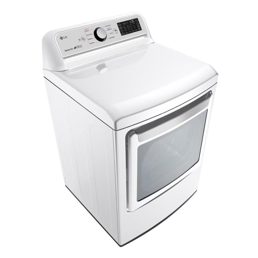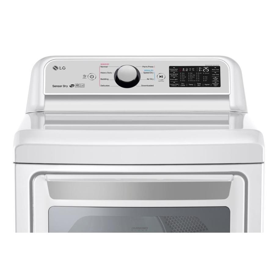 With 7.3 cubic feet of capacity, this dryer handles really large loads Load and unload the way you want to with the dual-opening options of the LG EasyLoad™dryer door Stay ahead of the cycle and access key LG dryer features remotely with ThinQ™ technology Sensor Dry system measures the moisture levels during the cycle and automatically adjusts the drying time With the FlowSense™ Duct Clogging Indicator you'll know when it's time to clean the ducts out to ensure great drying every time Save money and energy with a dryer that uses less energy than required by federal standards Intuitive Dial-A-Cycle™ controls and easy to read Dual LED Display indicators help you find the right setting every time There’s no need for laundry to be noisy. The LG LoDecibel™ motor: chances are you may not even notice it Setup an LG Service Appointment to reverse the EasyLoad™ dryer door, free of charge, Monday-Friday (excluding Public Holidays) by calling LG Customer Service8:00 am to 6:00 pm CST