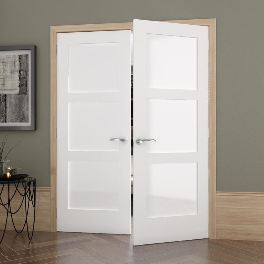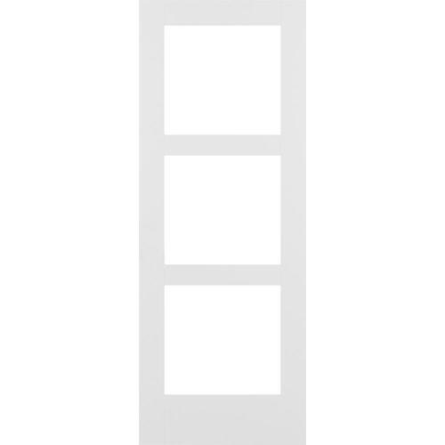American Building Supply Shaker 32-in x 80-in Primed White 3-Panel Square Frosted Glass Solid Core Primed Pine MDF Slab Door